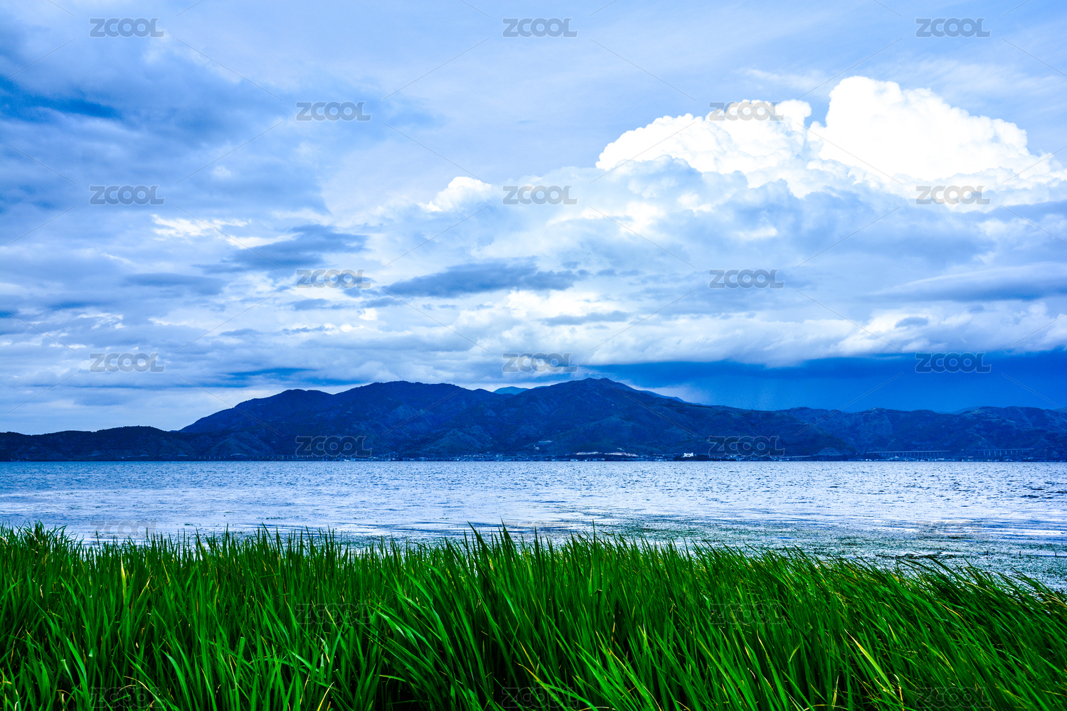 中国云南省大理市,蓝天白云下的苍山洱海自然风光