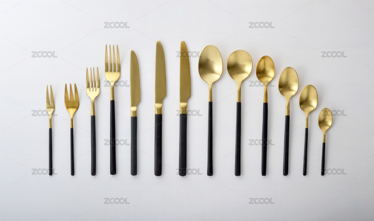 金色餐具在黑色背景上的优雅展示
