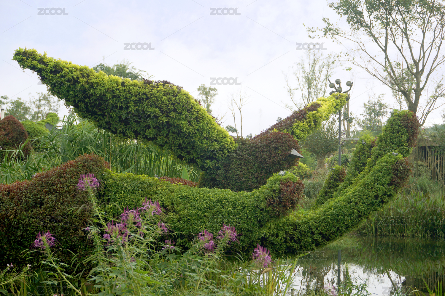 中国四川成都锦绣安仁奇境花园绿植雕塑大象