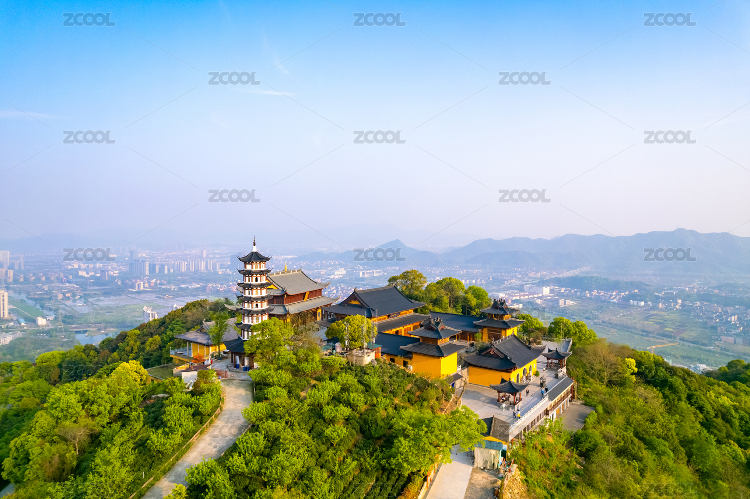 浙江,绍兴,狮林寺,航拍,寺院,寺庙,山顶,树,佛教,宗教