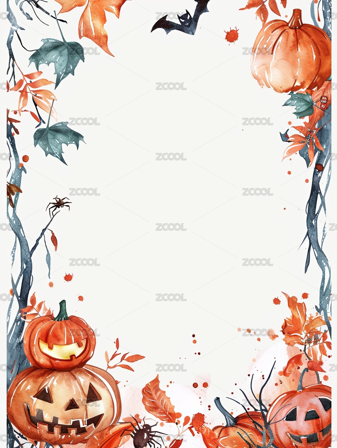 万圣节南瓜蝙蝠等卡通元素组成的卡片和画框