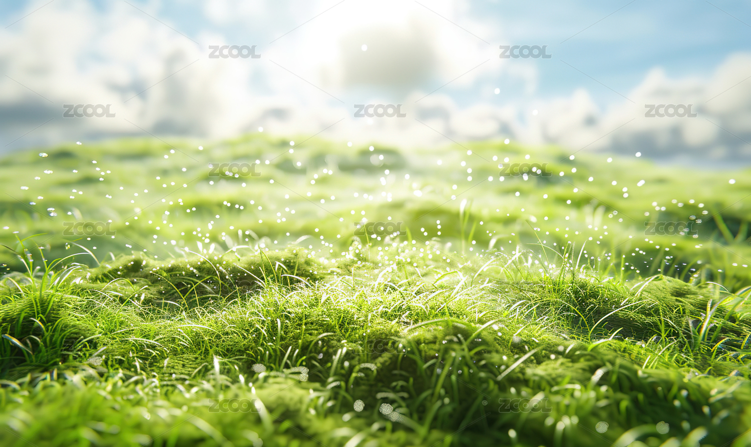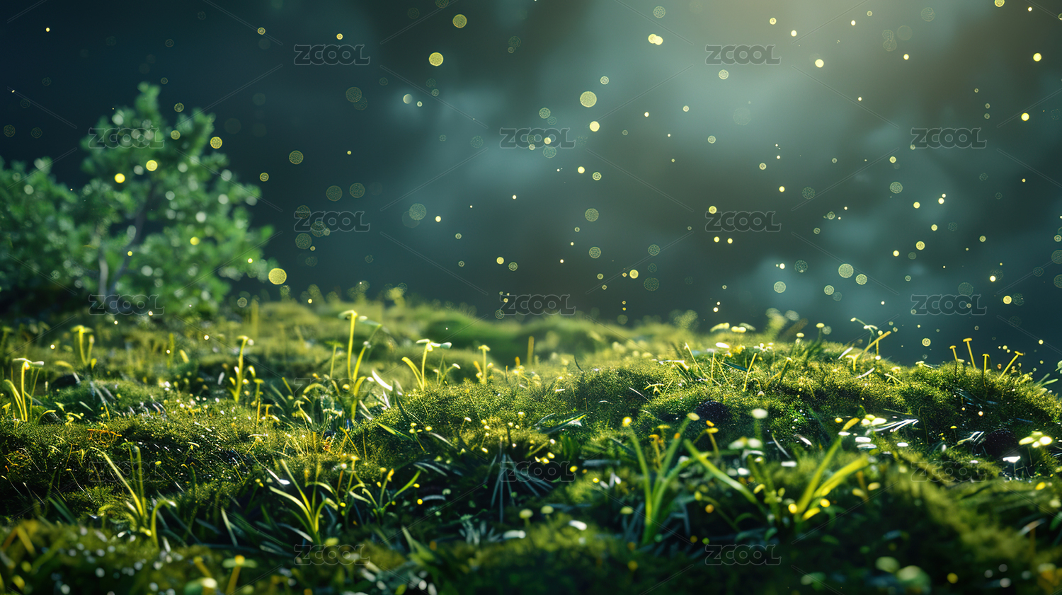 3D卡通春天草地可爱粉色花朵三维自然背景