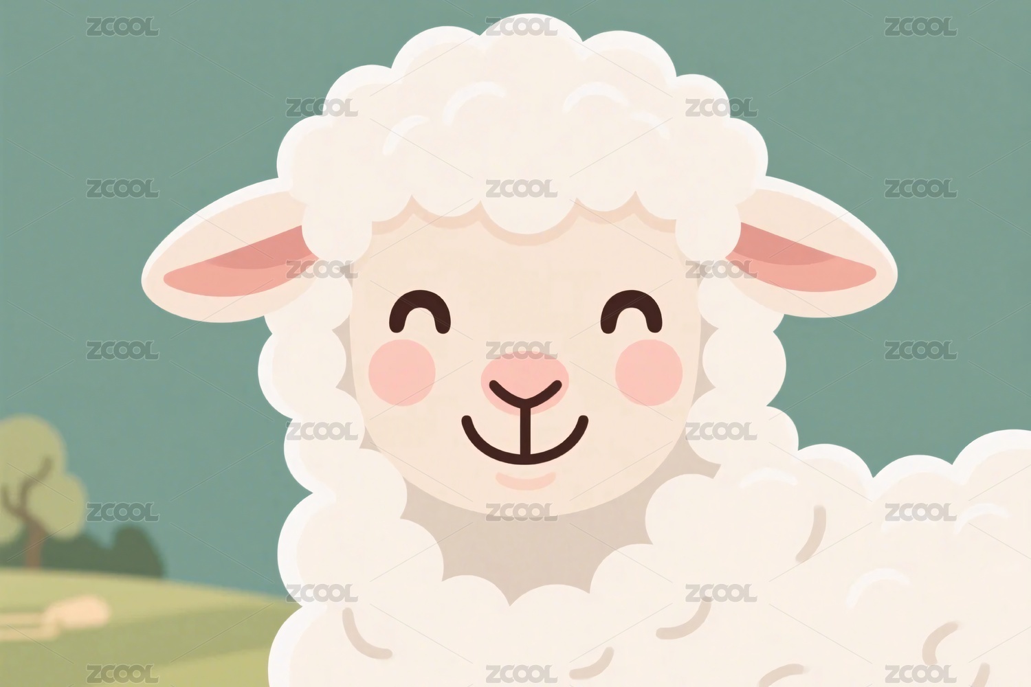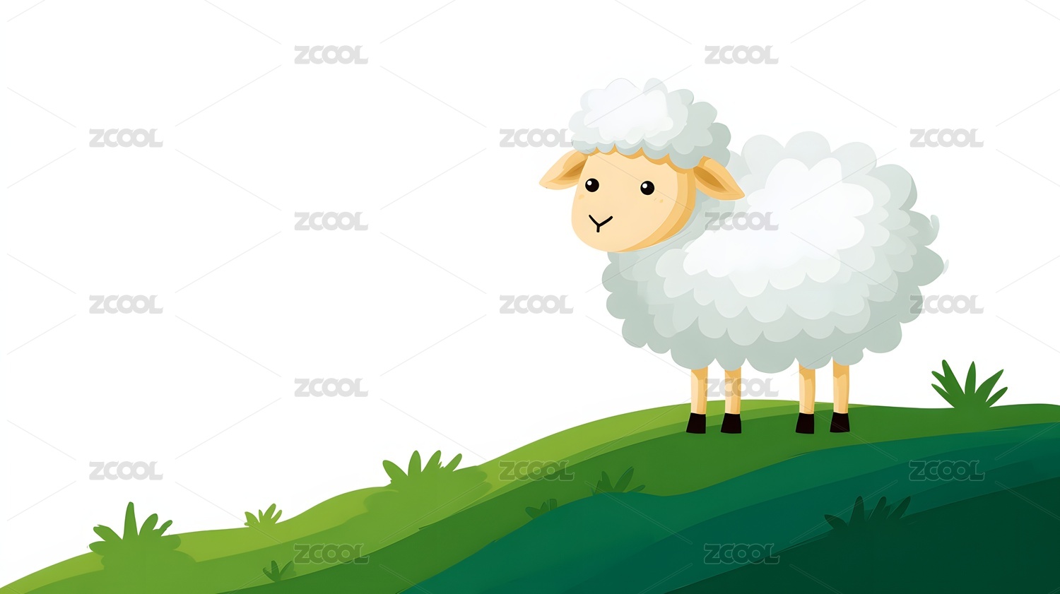 白天白底草原站立的毛绒绒绵羊特写插画绘画