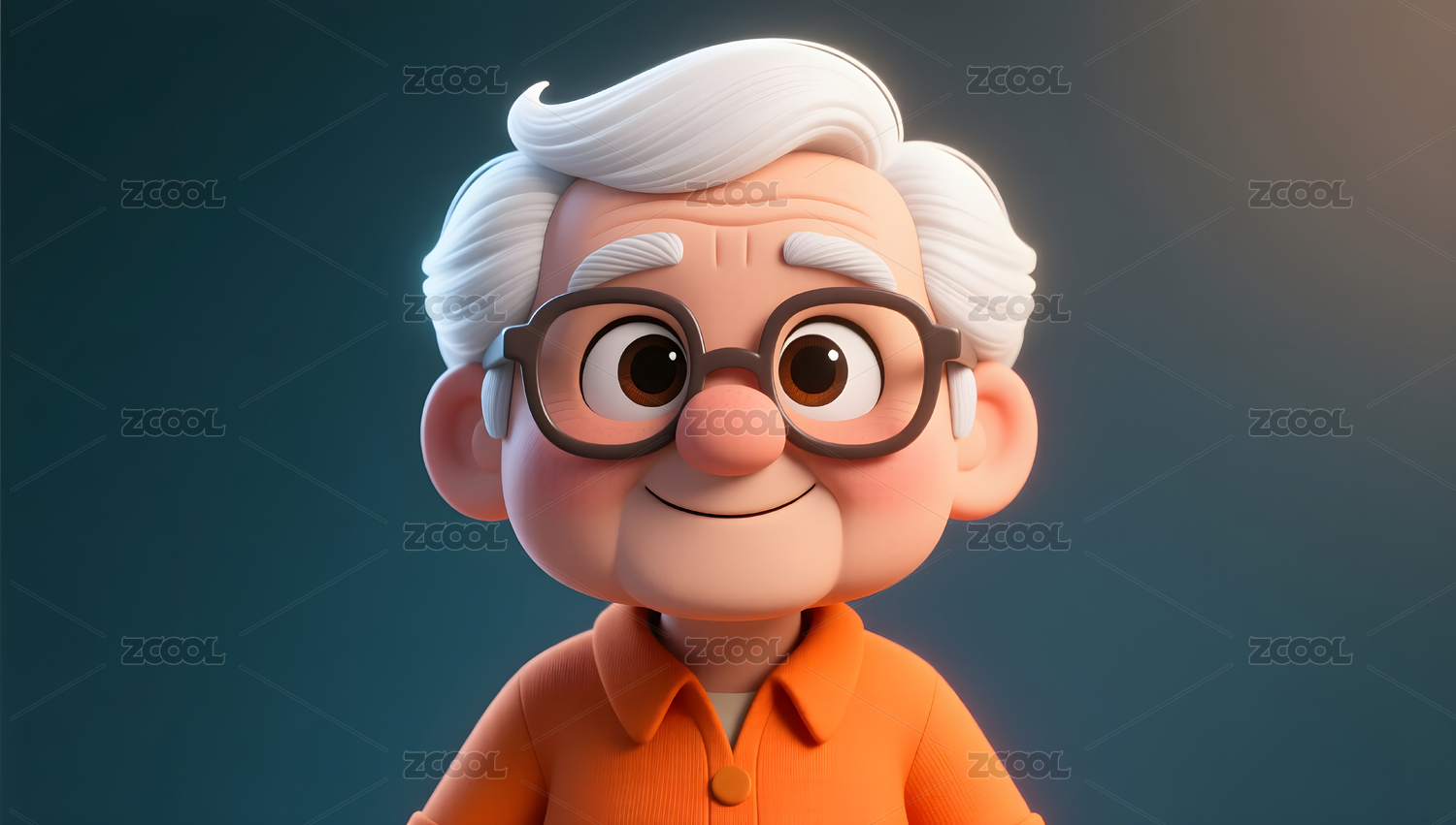 戴着眼镜的退休老爷爷3D插画