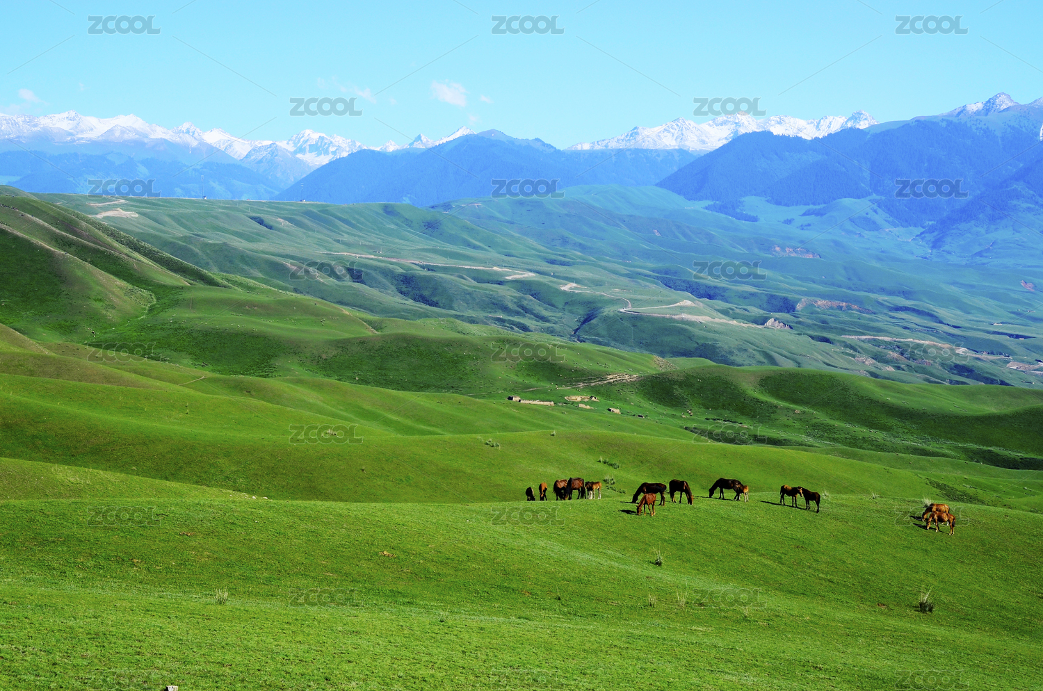 中国新疆伊犁天山脚下的天然牧场