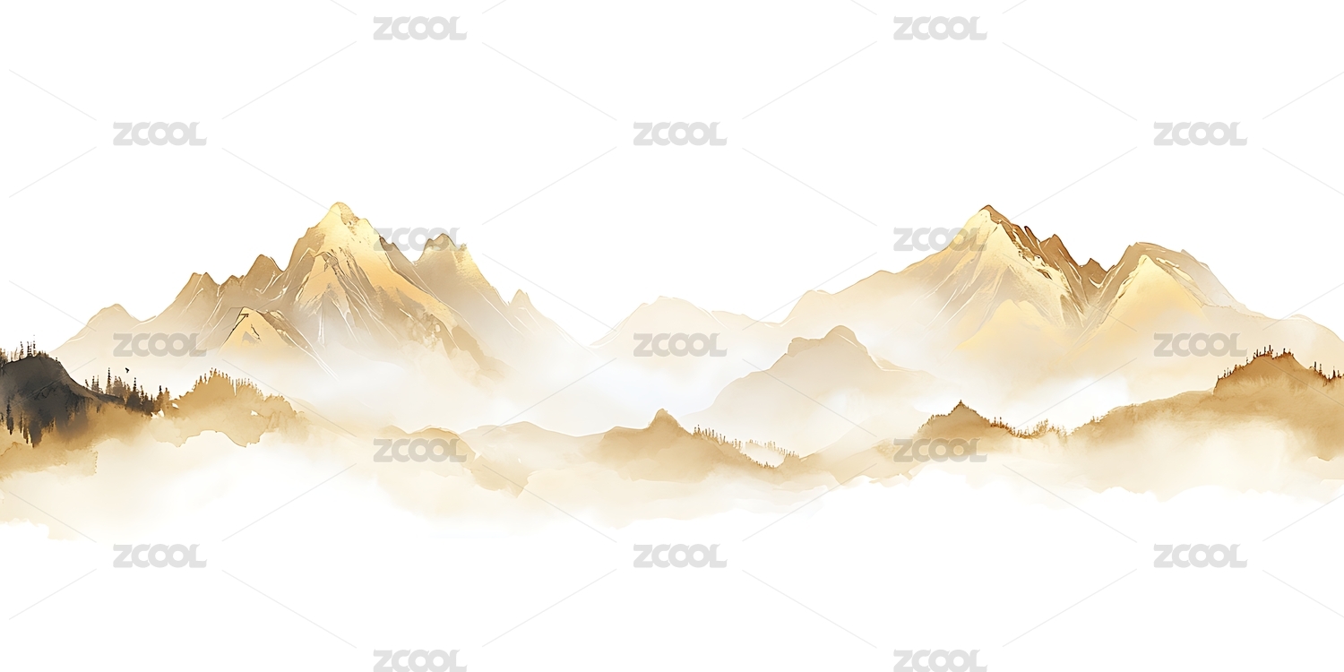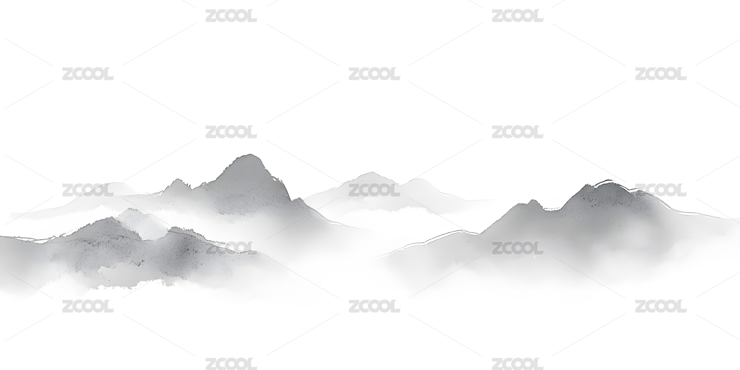 水墨画风山脉云雾缭绕意境图