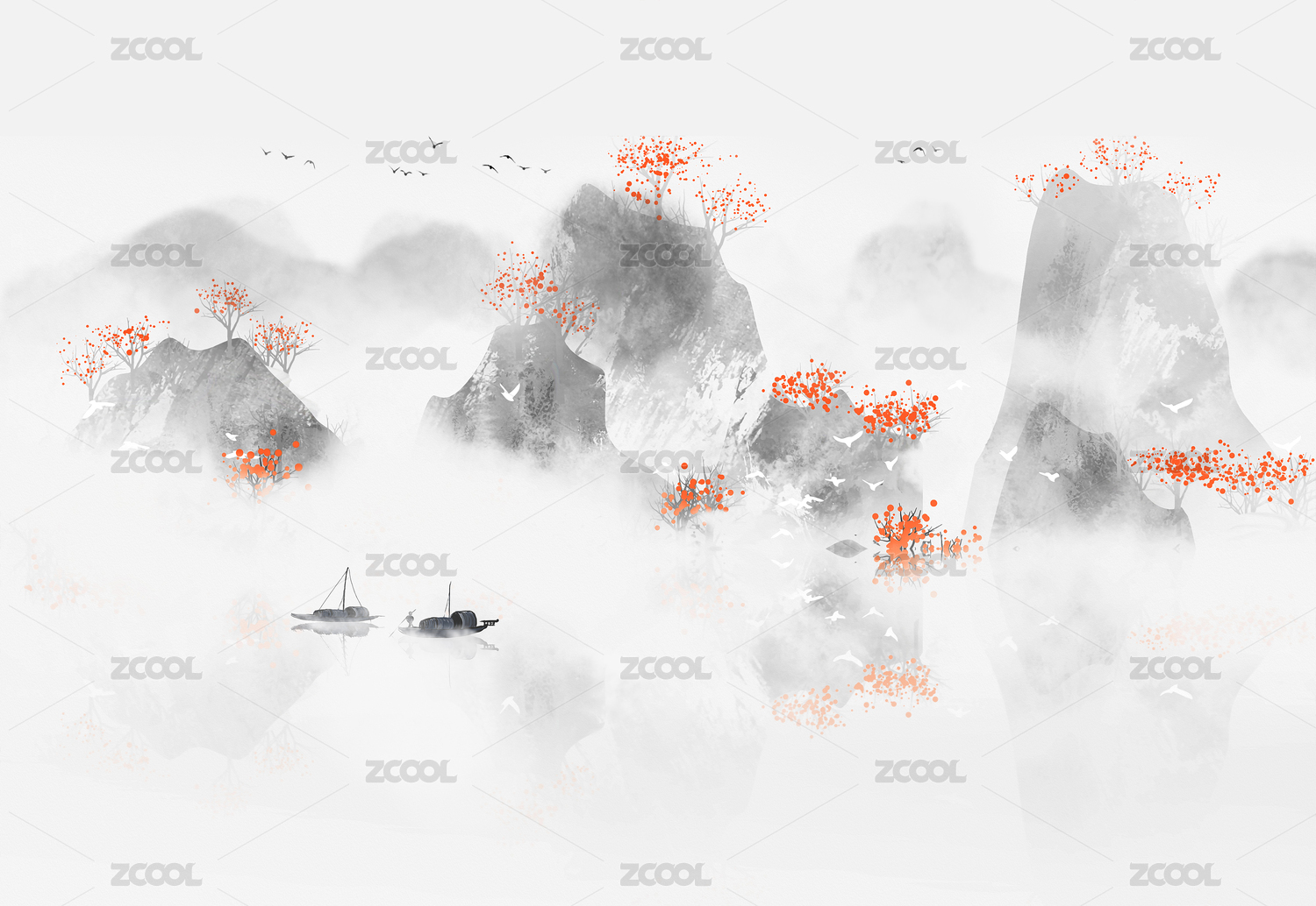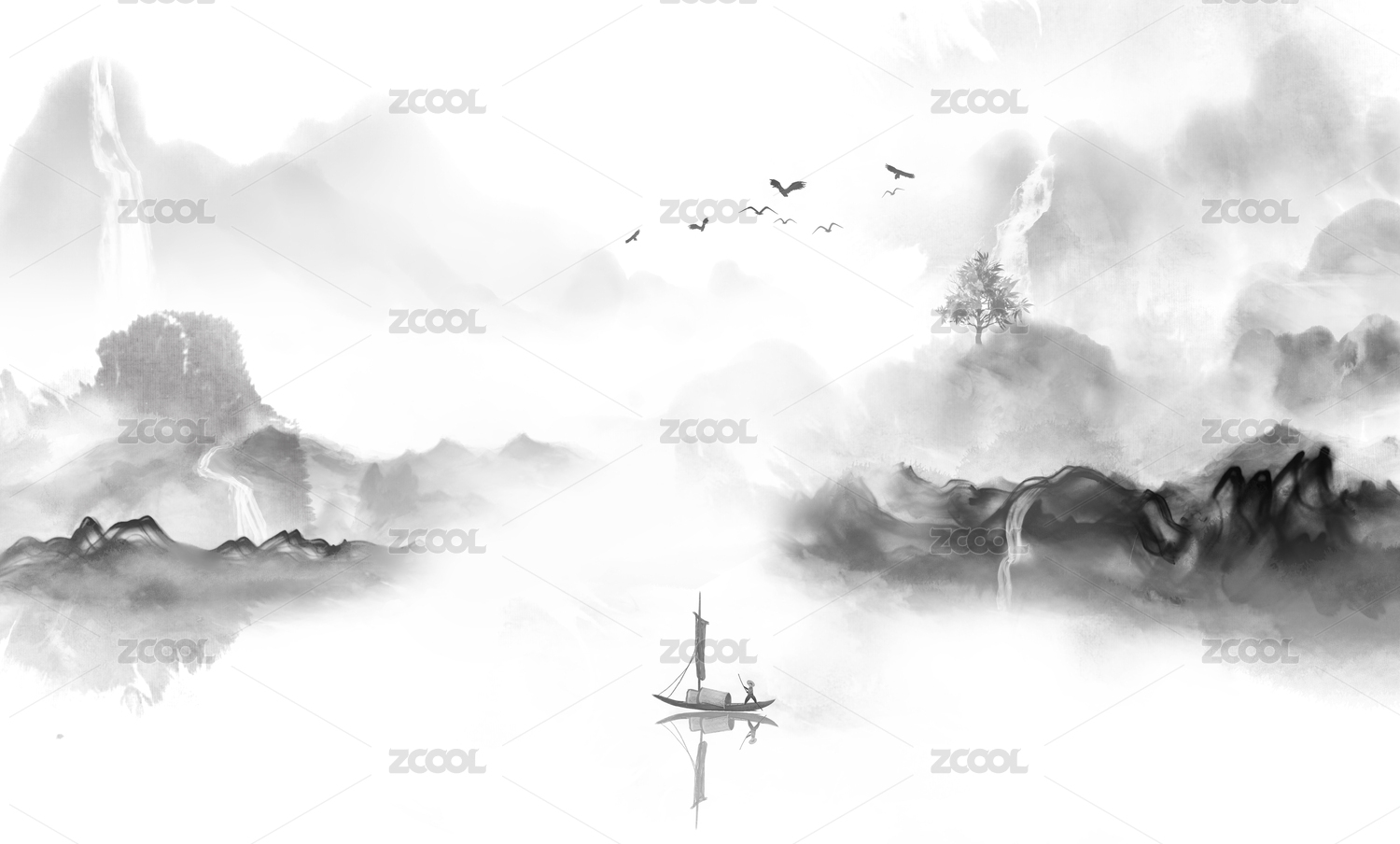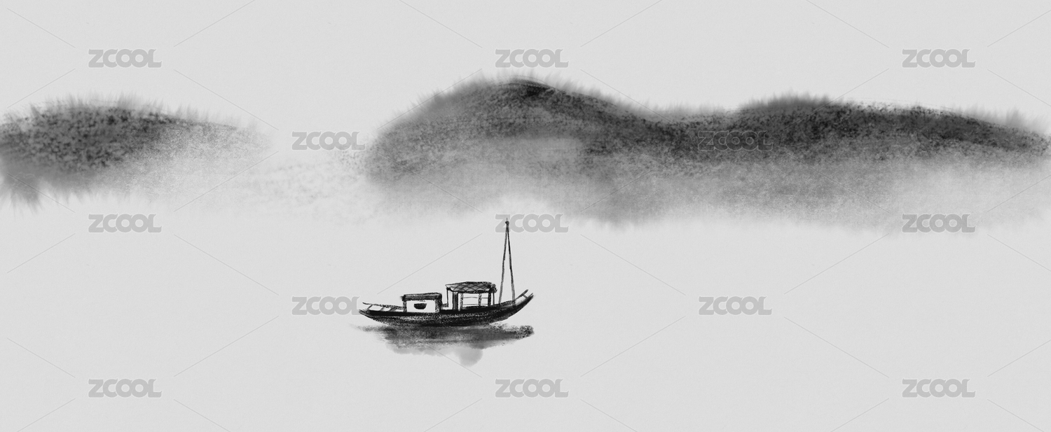 中国风,山水画,水墨画,写意,意境,背景,场景,渔船,水墨,山水