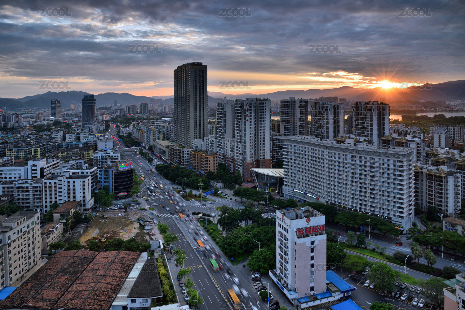 肇庆城市黄昏风光