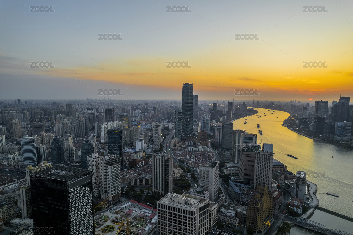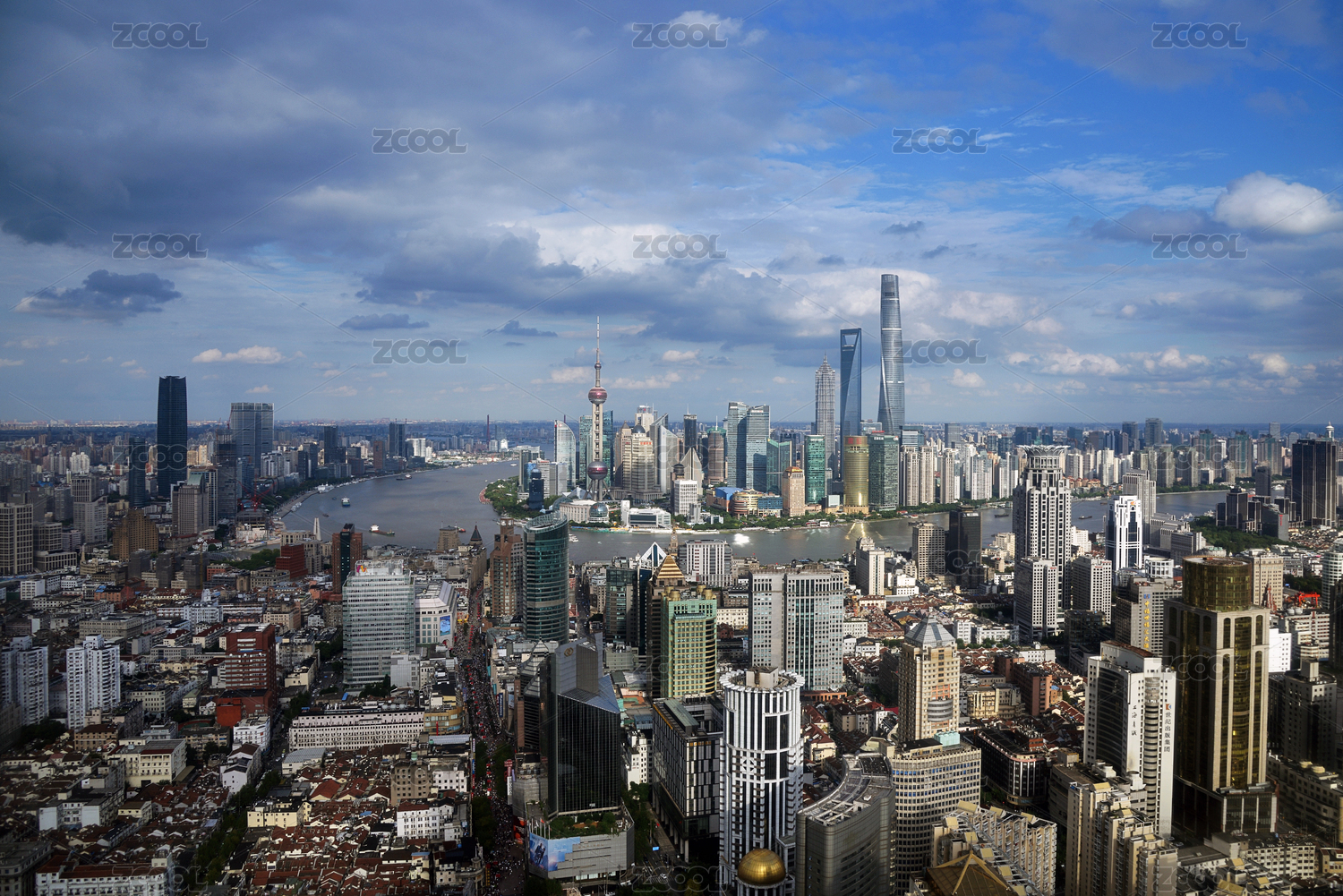 中国上海外滩黄浦江陆家嘴金融城建筑城市风光
