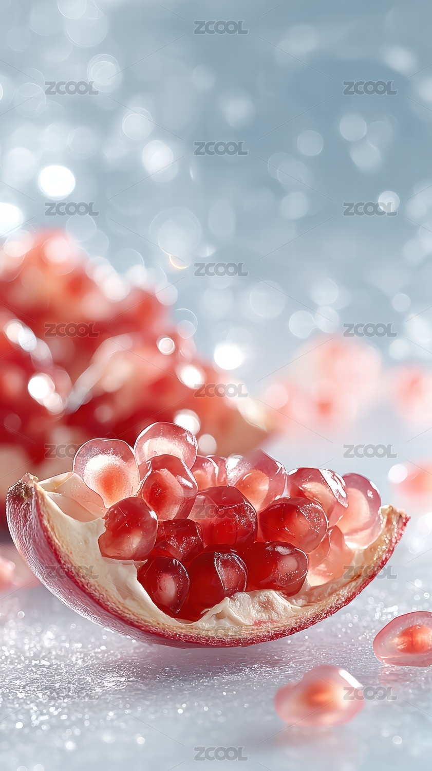 晶莹剔透的石榴籽与背景光影
