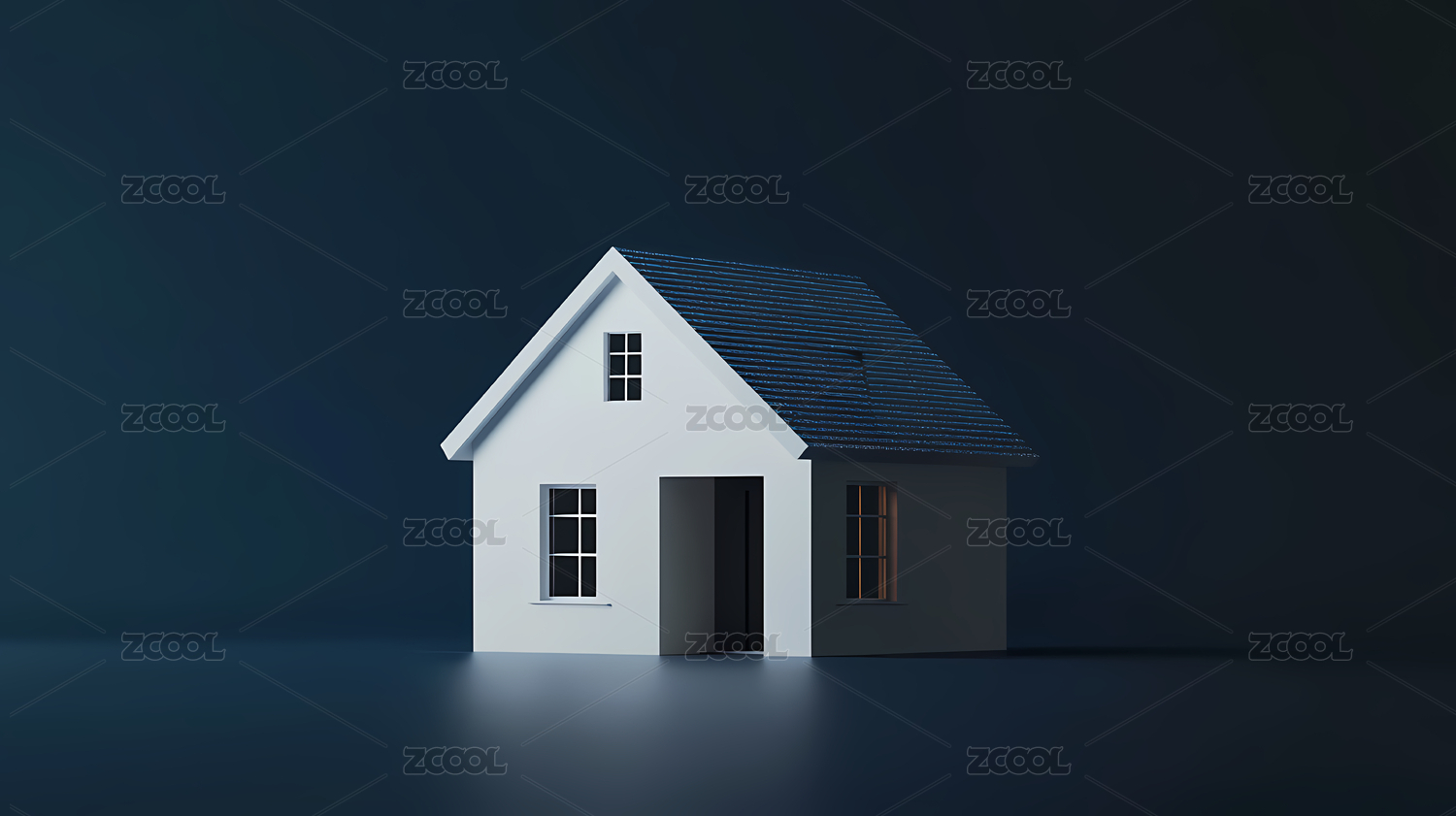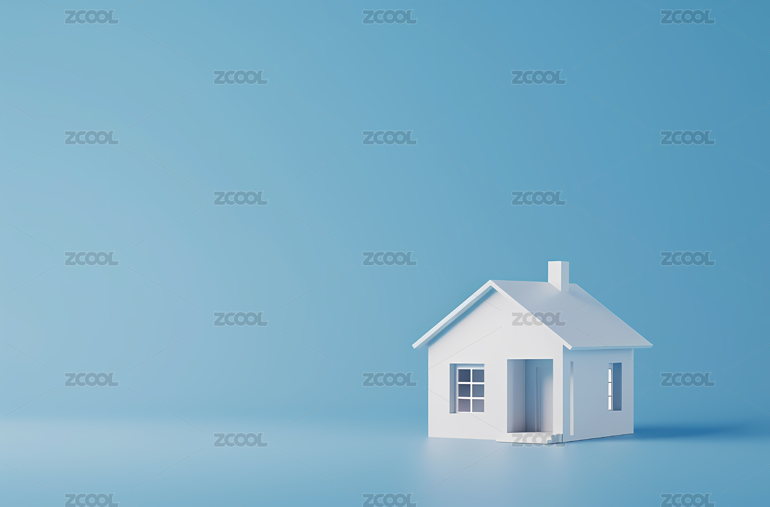 蓝色背景下的模型房子特写镜头