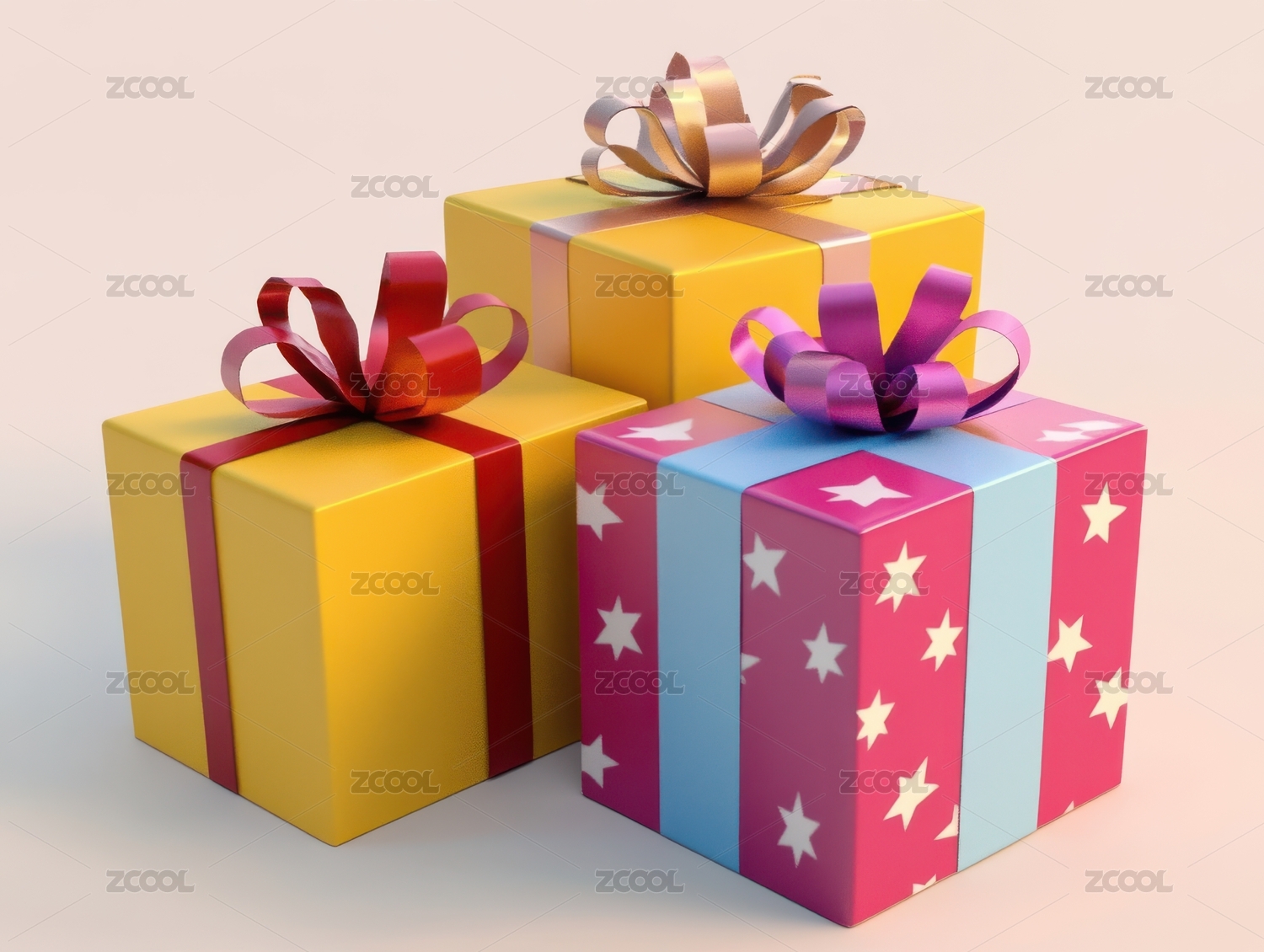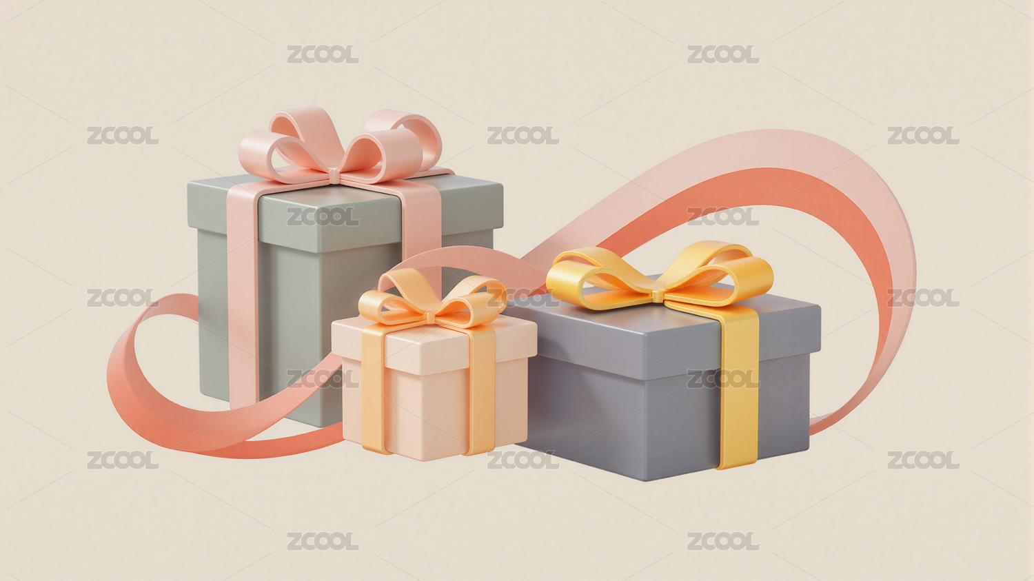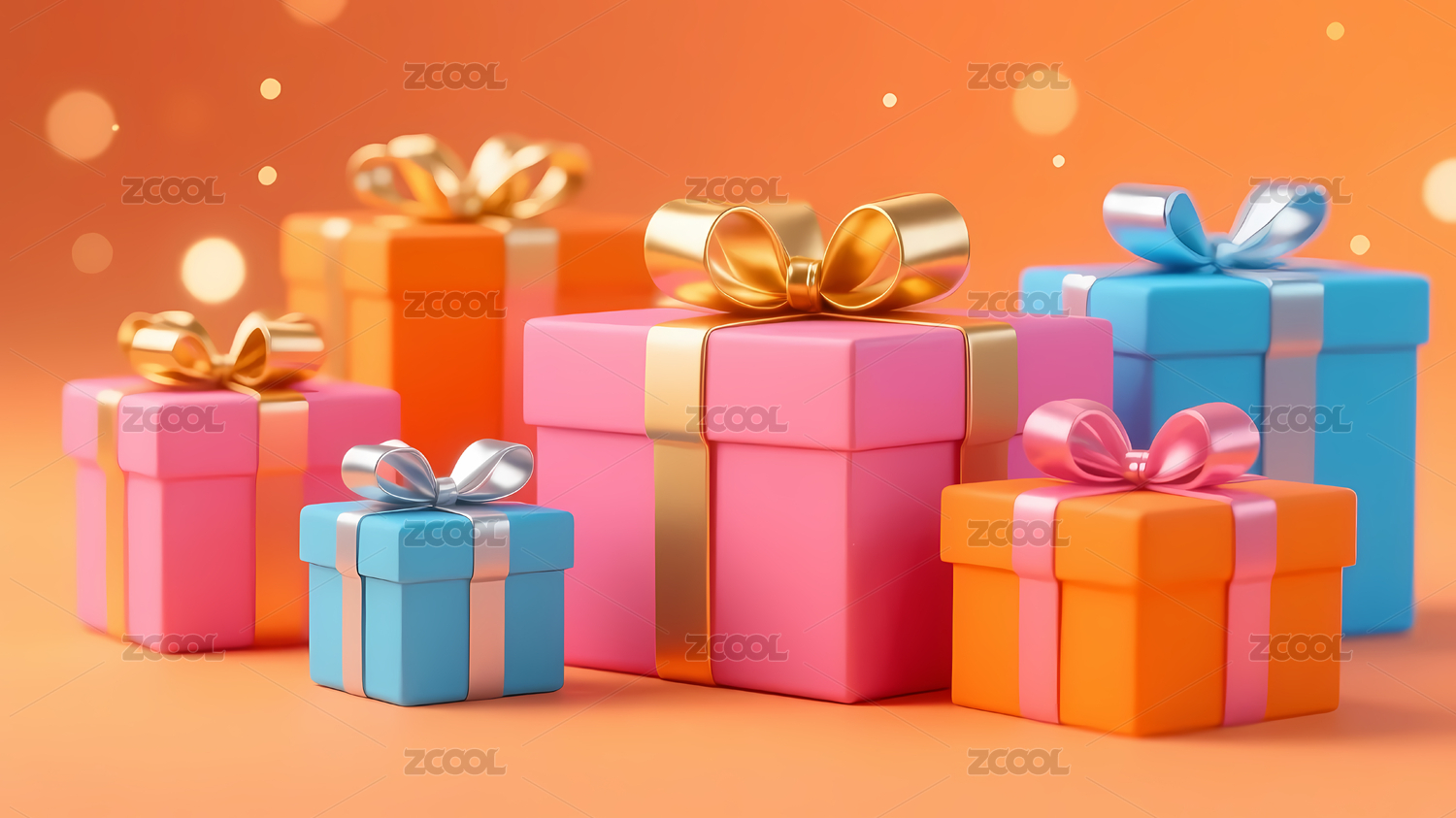 3d精美礼盒与彩色丝带