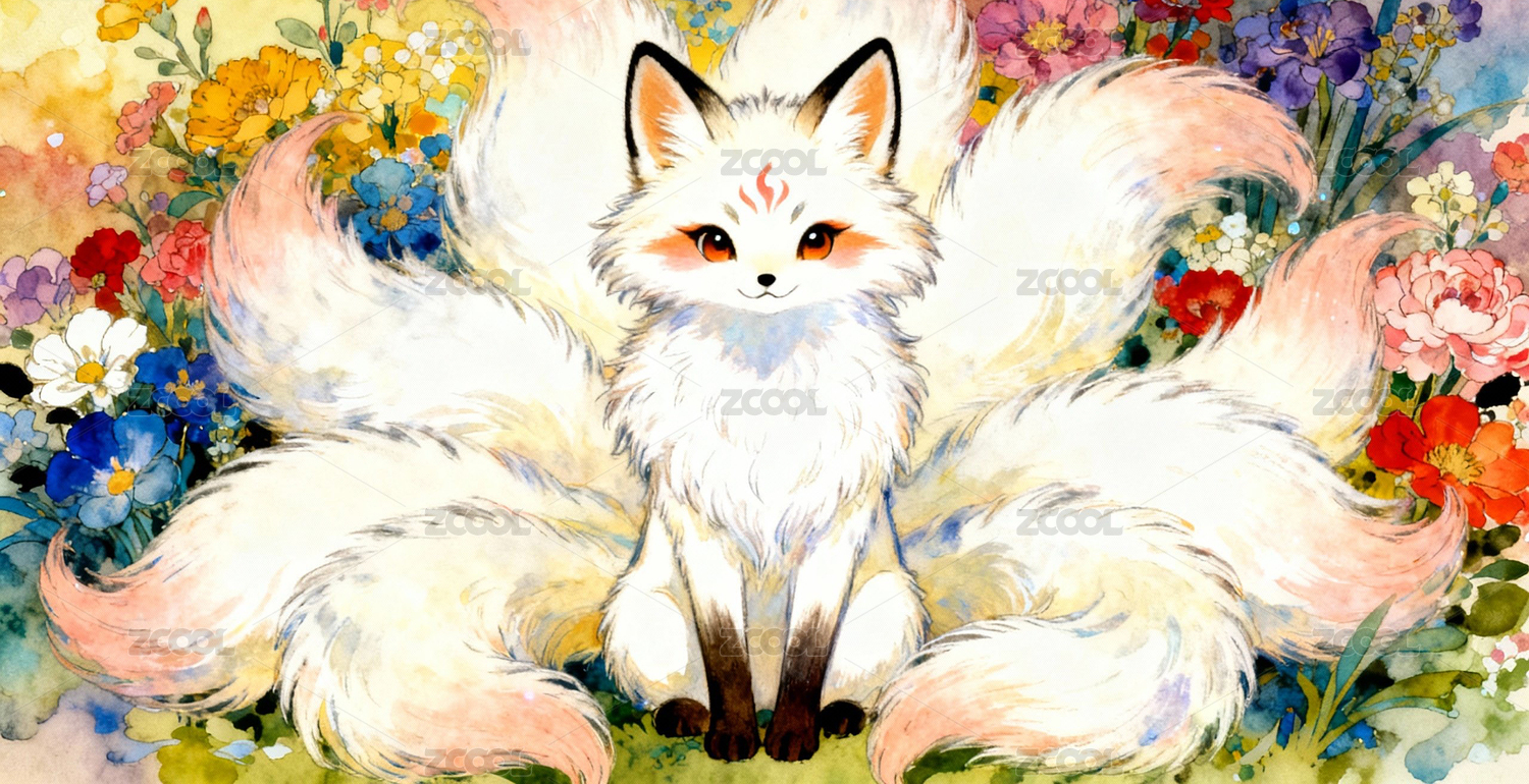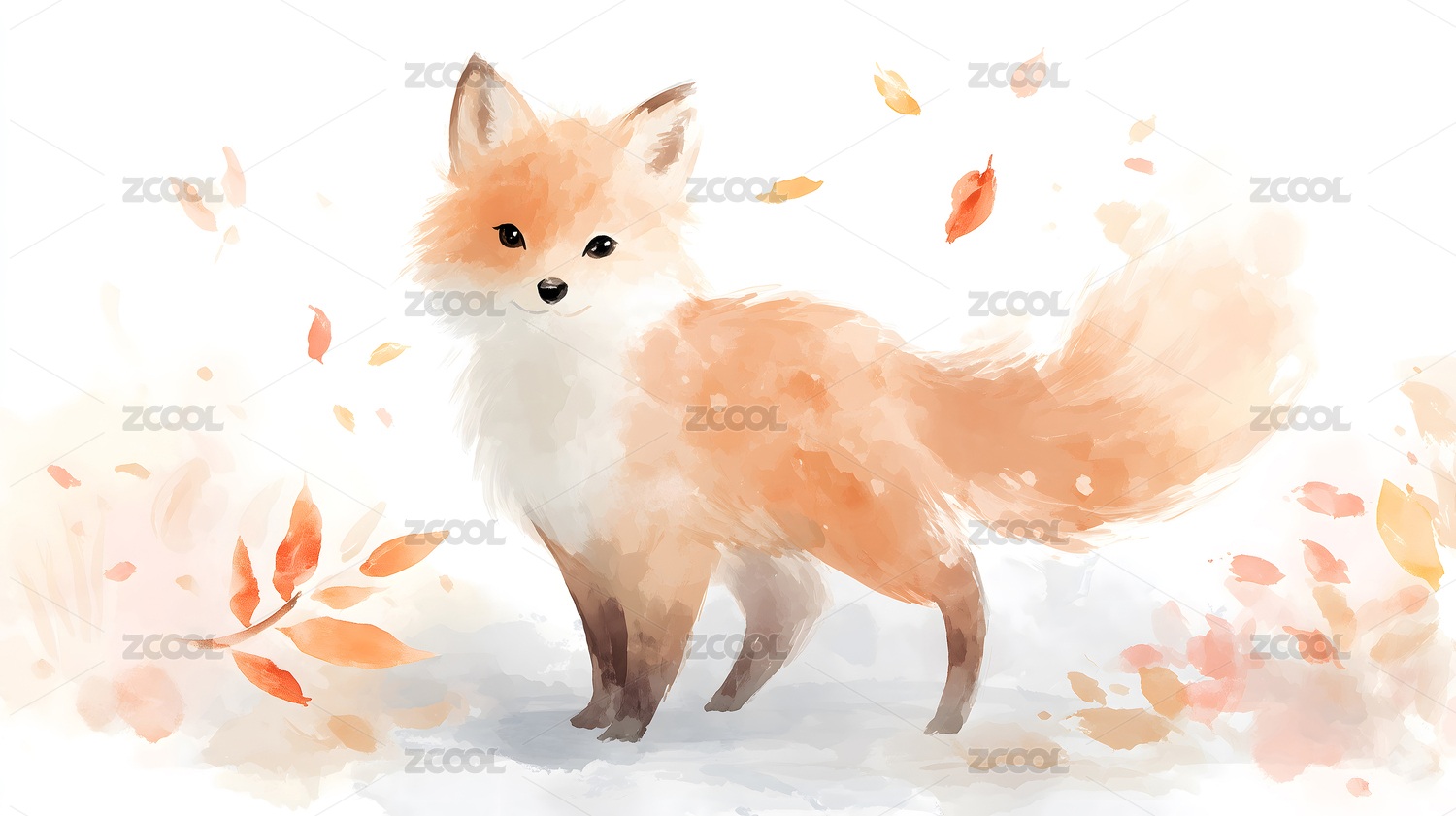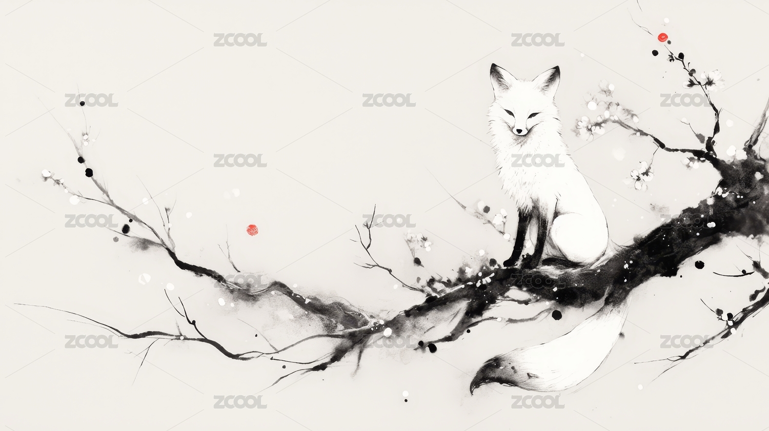 狐狸,白狐,雪狐,梅花,寒梅,冬日,雪景,水墨画,写意画,中国画