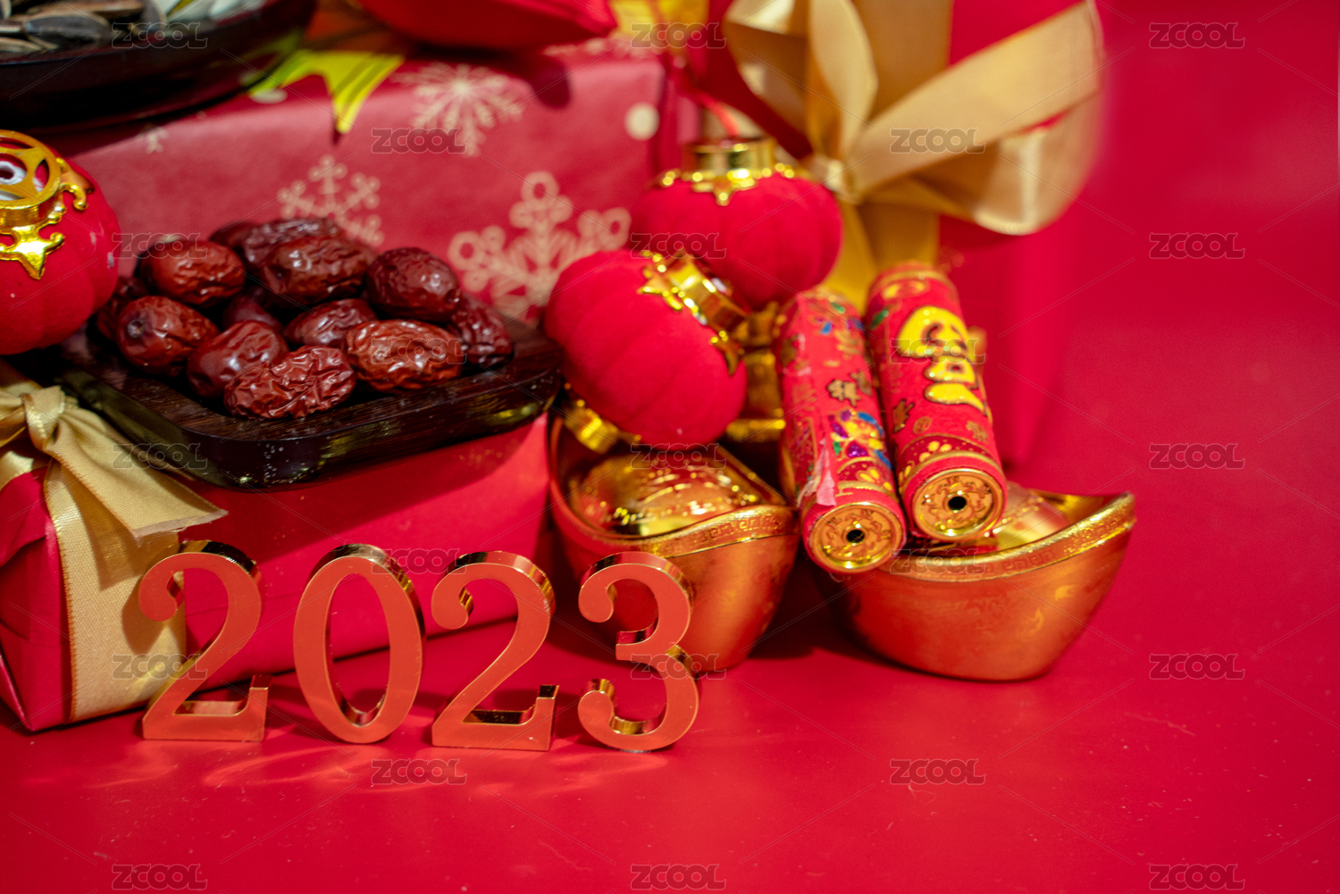 红色背景上的2023新年创意图片
