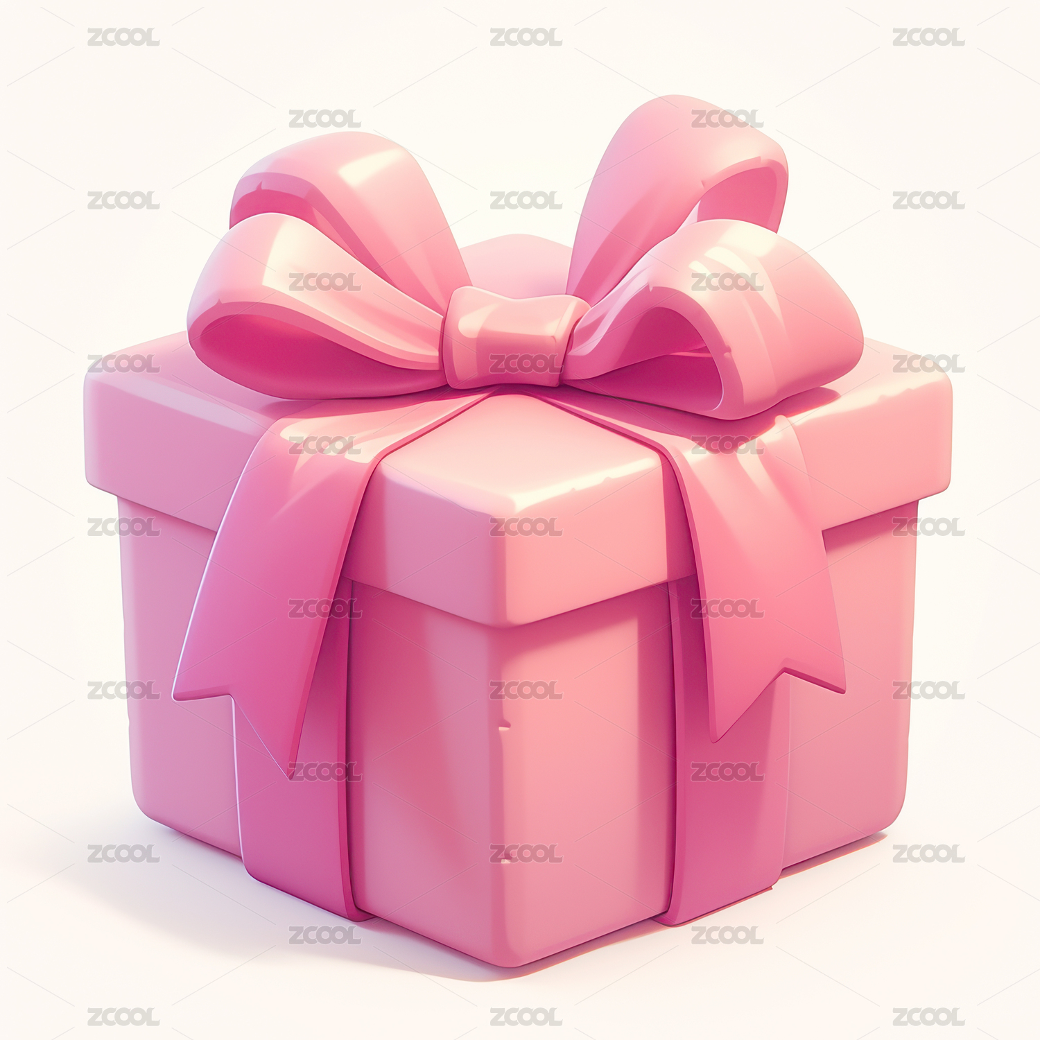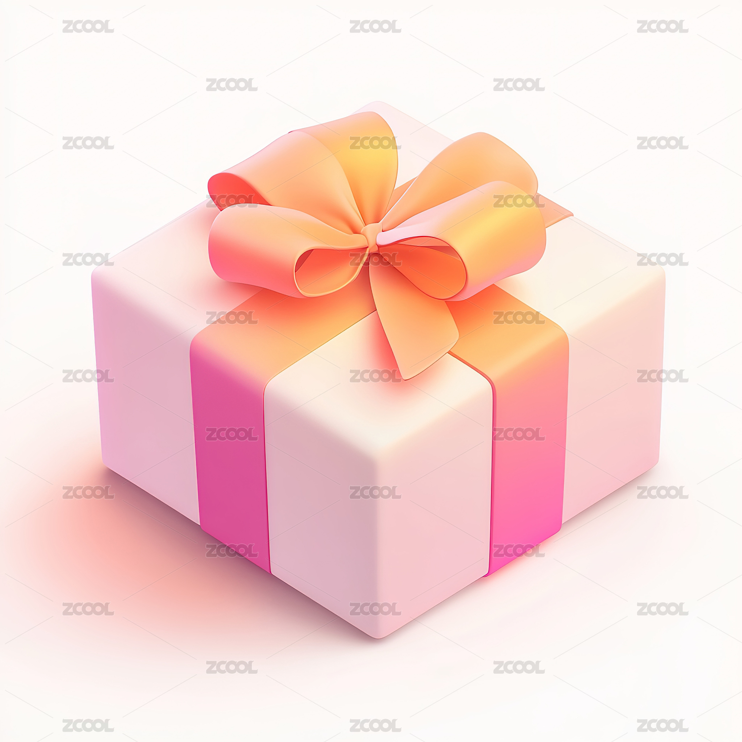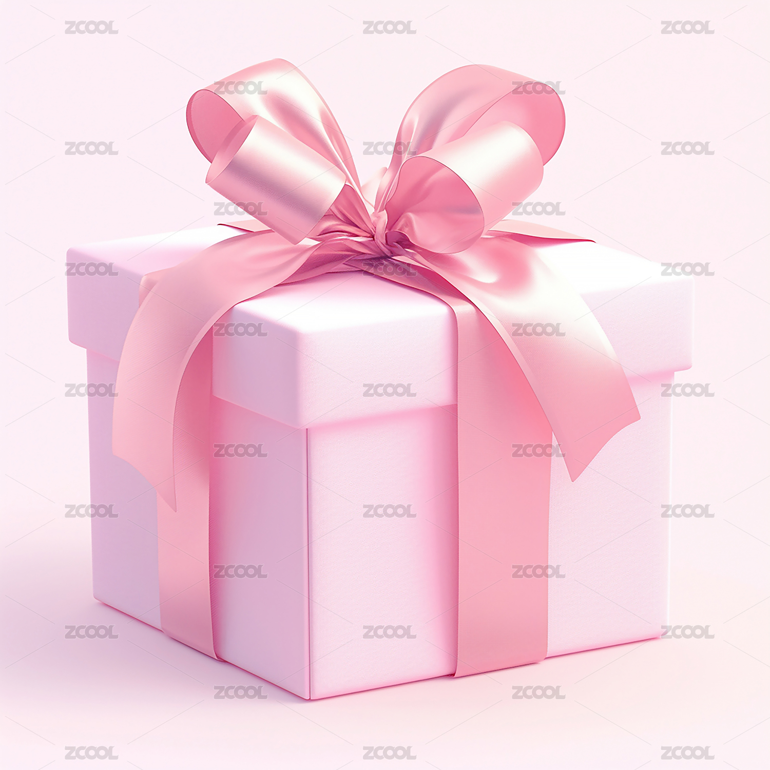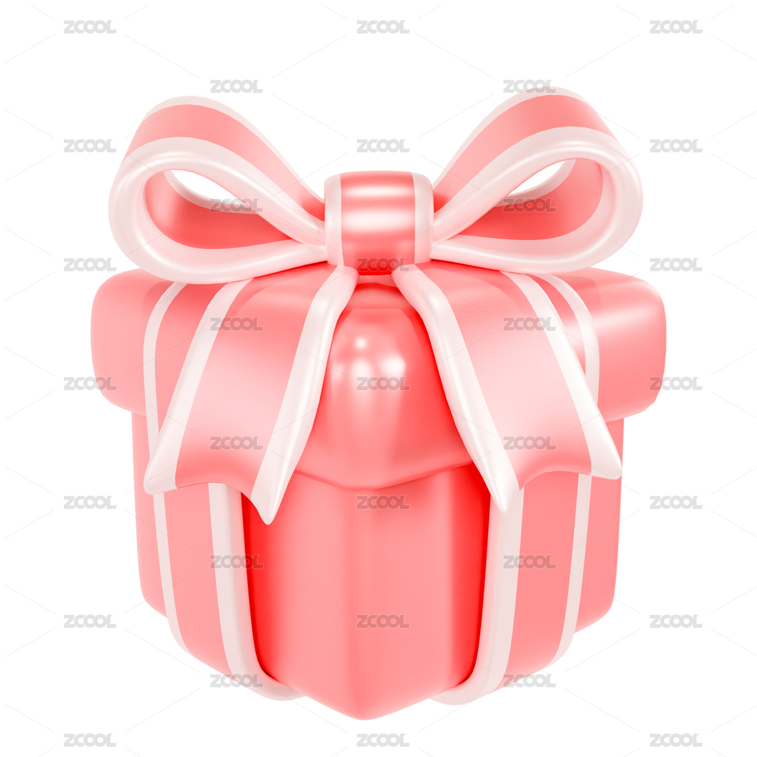 3D渲染绑着蝴蝶结渐变粉色情人节可爱礼盒