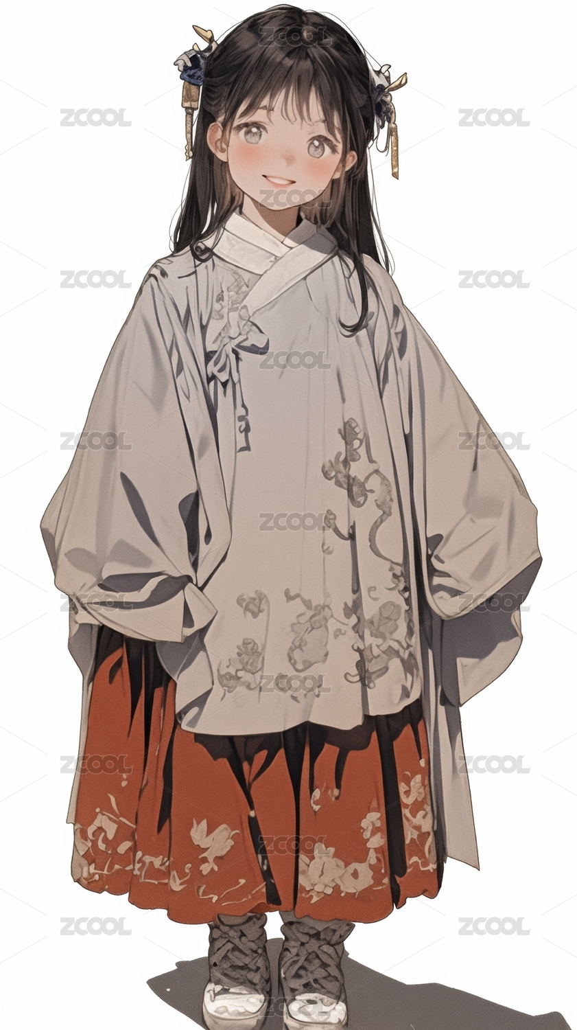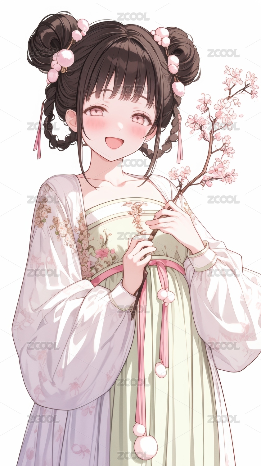 喜庆冬天戴兔子帽子穿着汉服的古装女孩