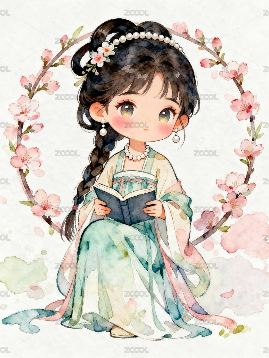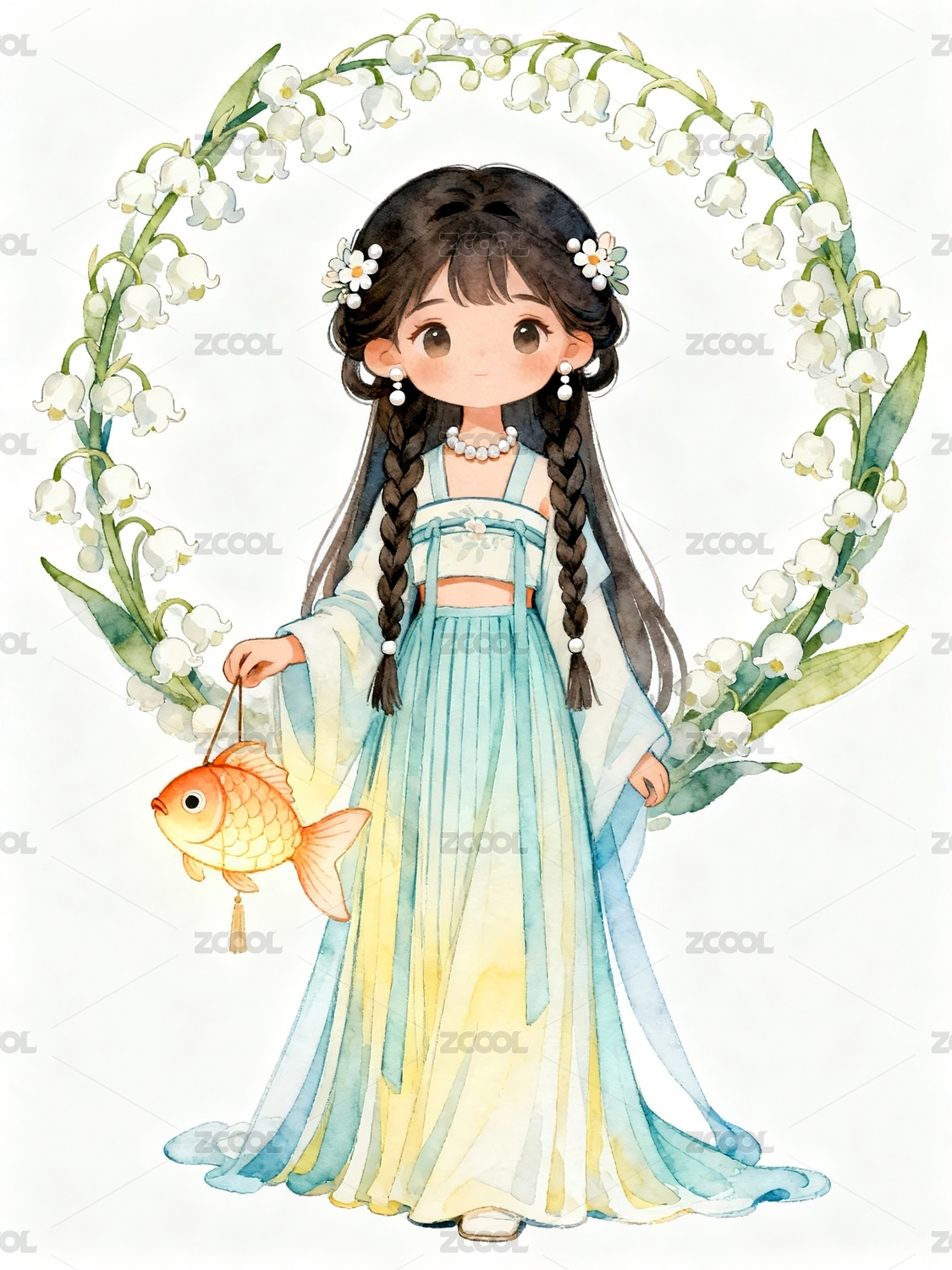 十二星座,国风,水墨,卡通,插画,女孩,摩羯座