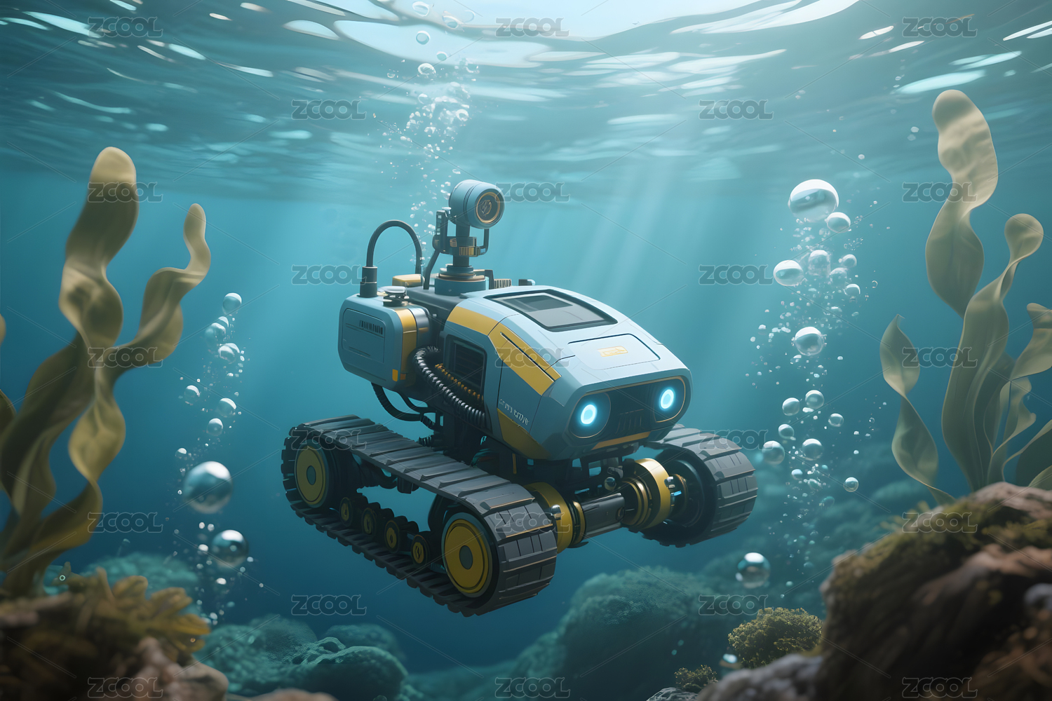 人工智能,插画,机器人,探险,深海,海底,科技,科学,技术,设计