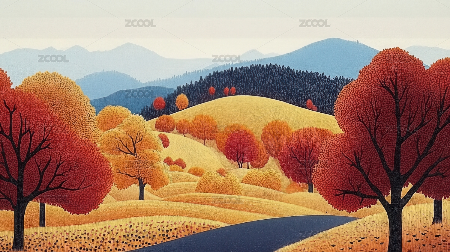 秋日山景油画风格