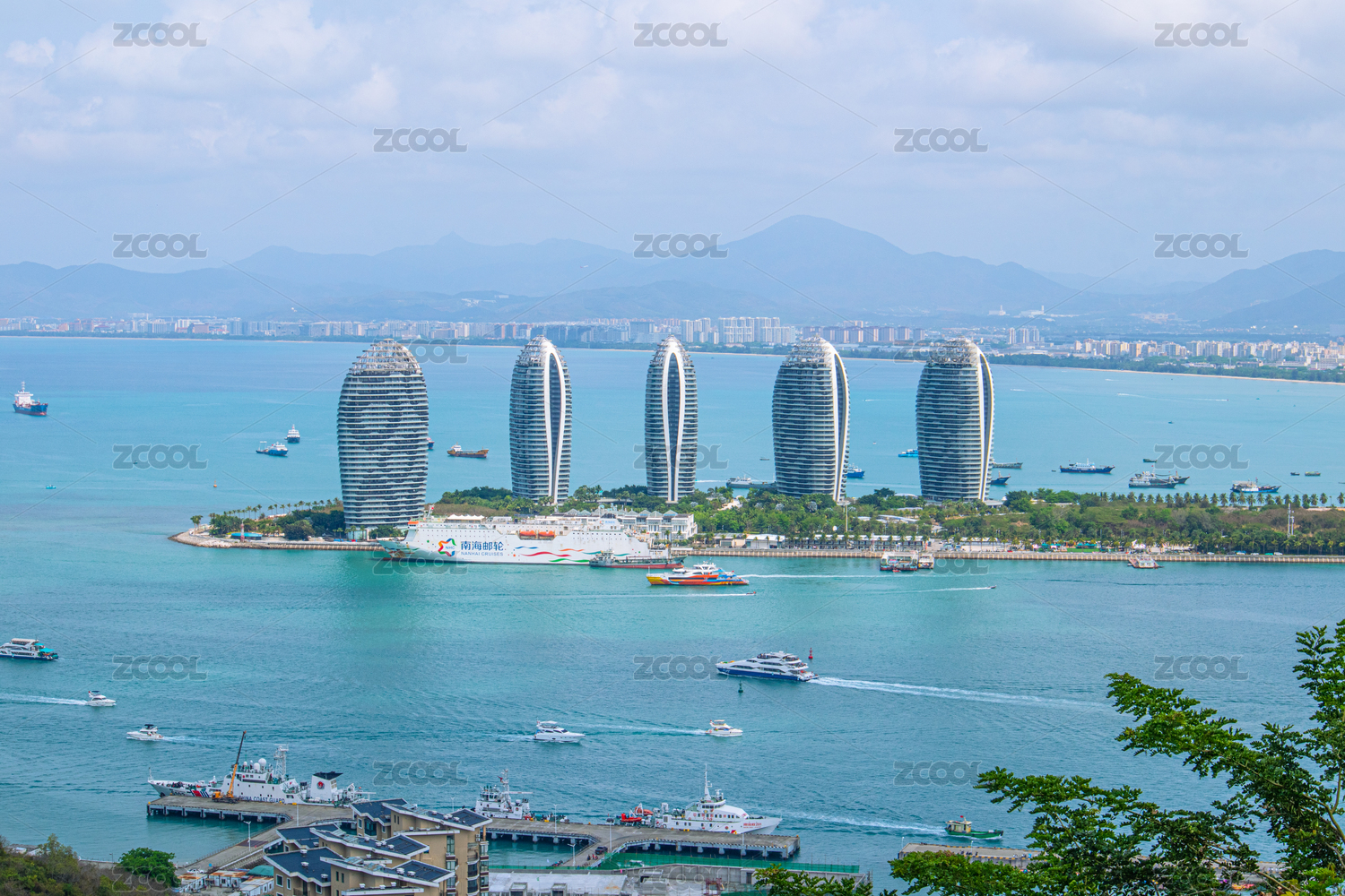 海南三亚鹿回头风景区俯瞰帆船酒店