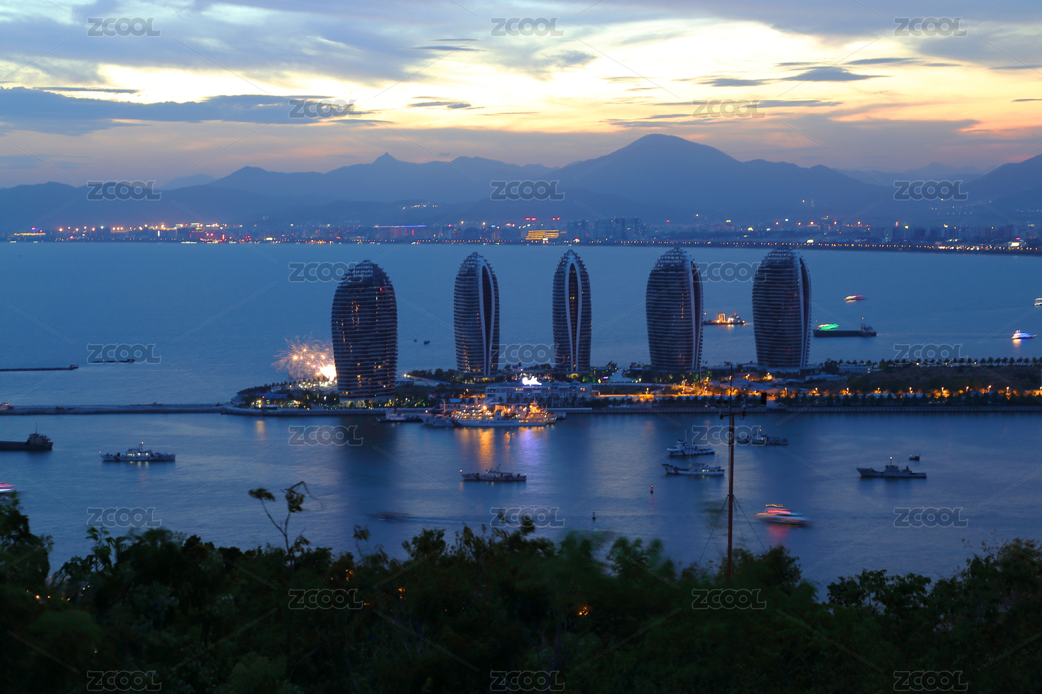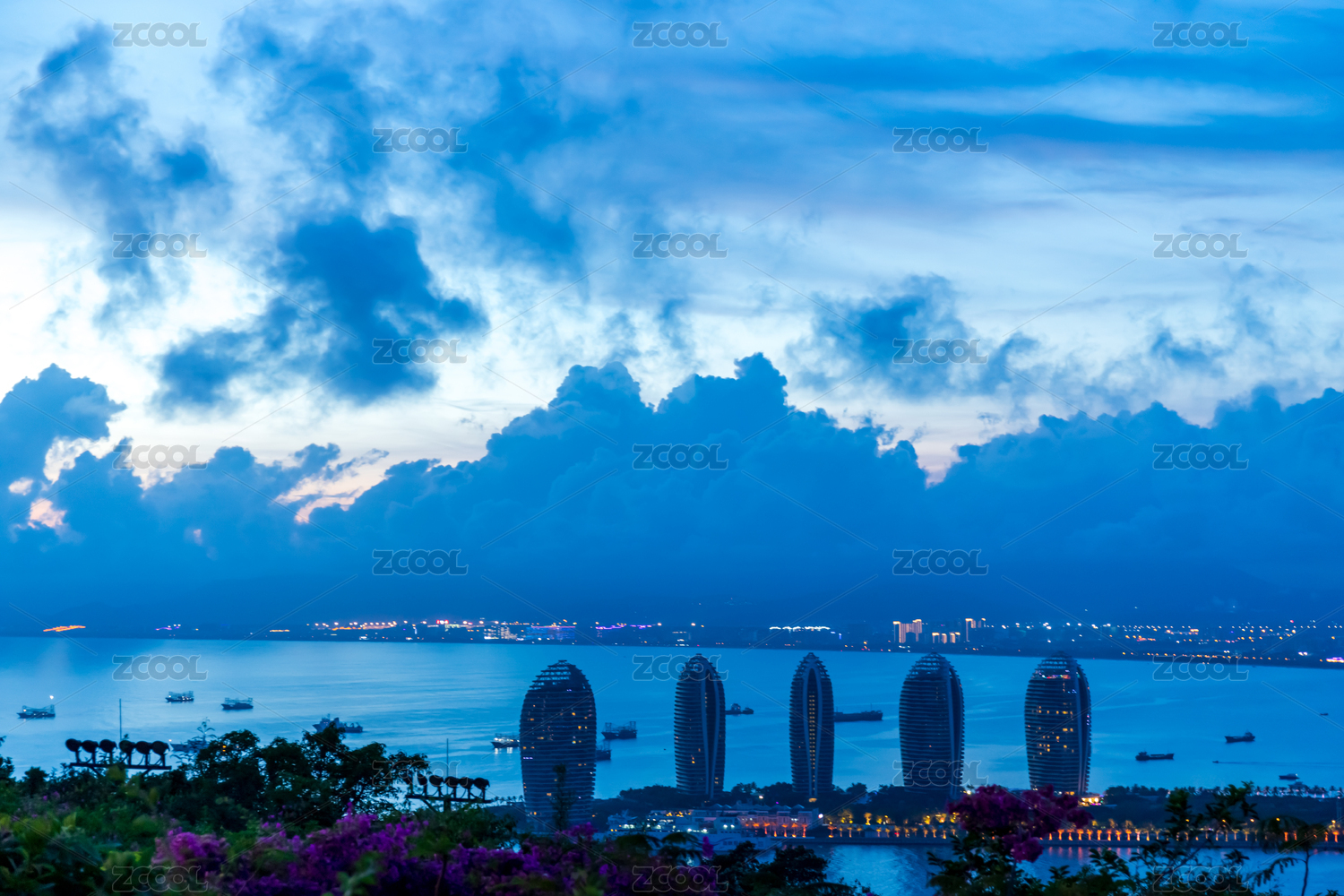 凤凰岛,三亚湾,城市风光,海滨,夜景,海景,三亚市,海南省,海南岛,中国