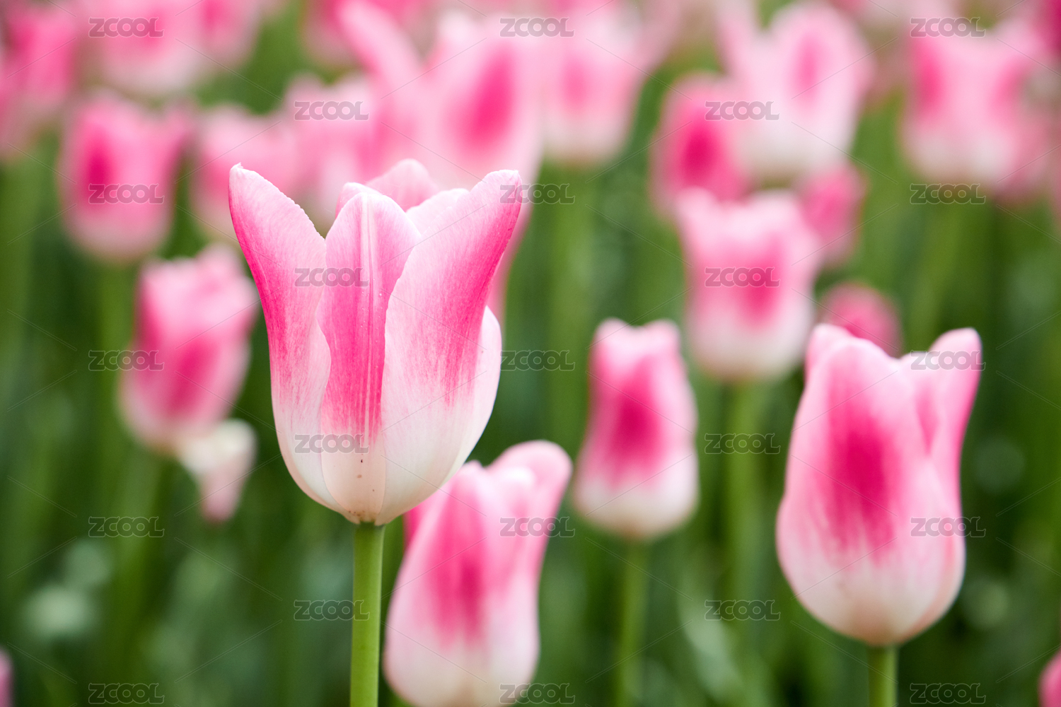 夏天里公园里盛开一片粉红色的郁金香