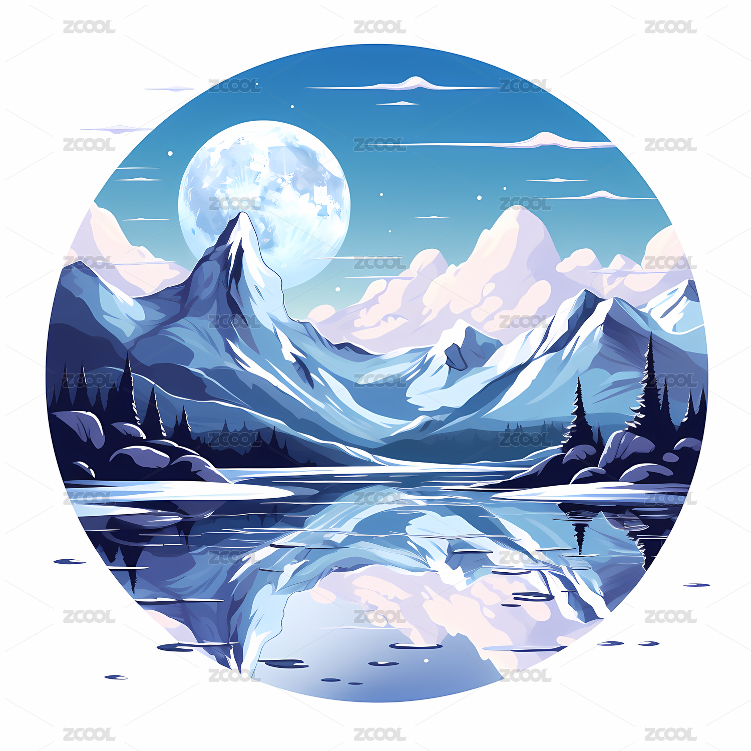 日出,雪山,山峦,冰川,大树,松树,简约,艺术,复古,美式