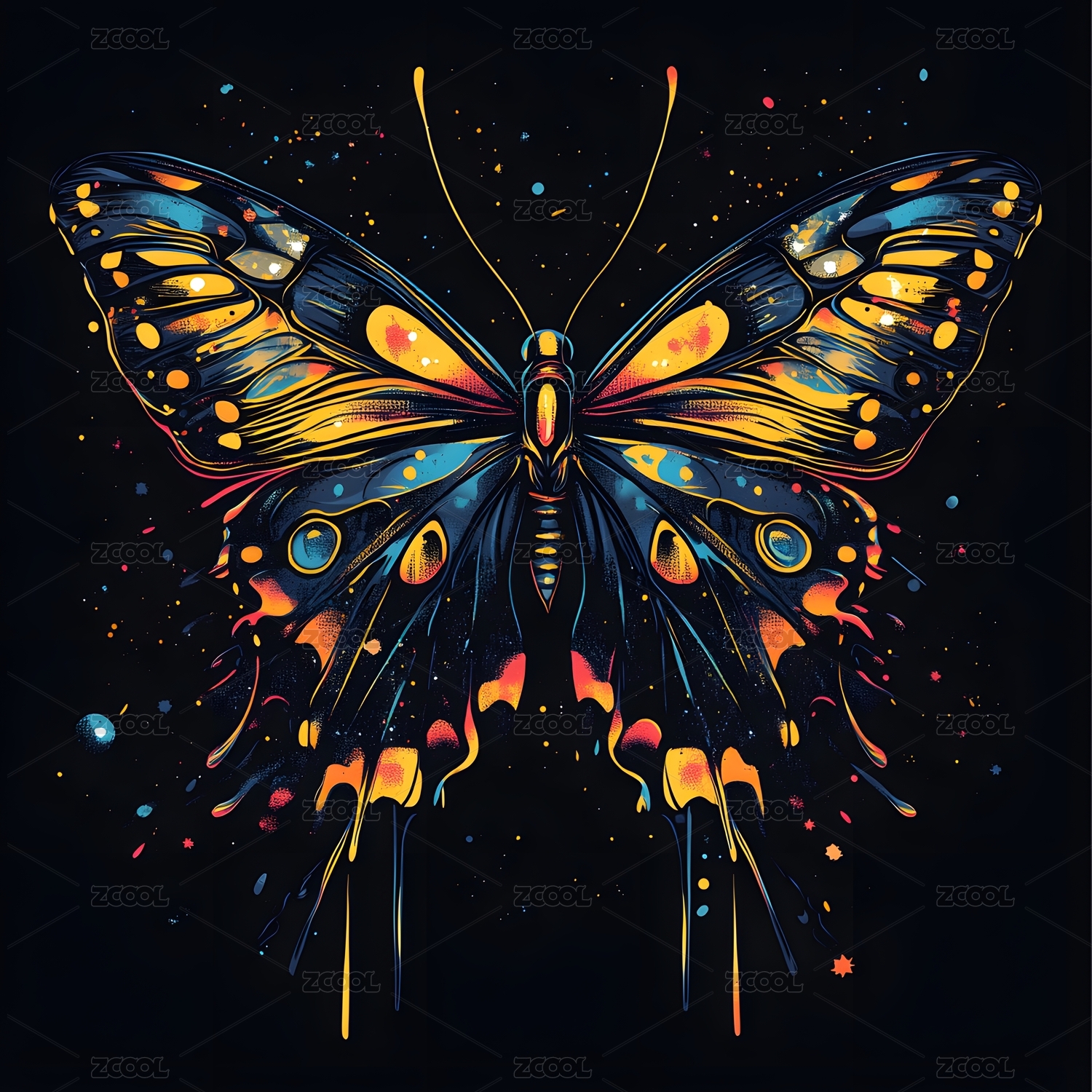 唯美梦幻展翅飞翔的蝴蝶图案印花插画