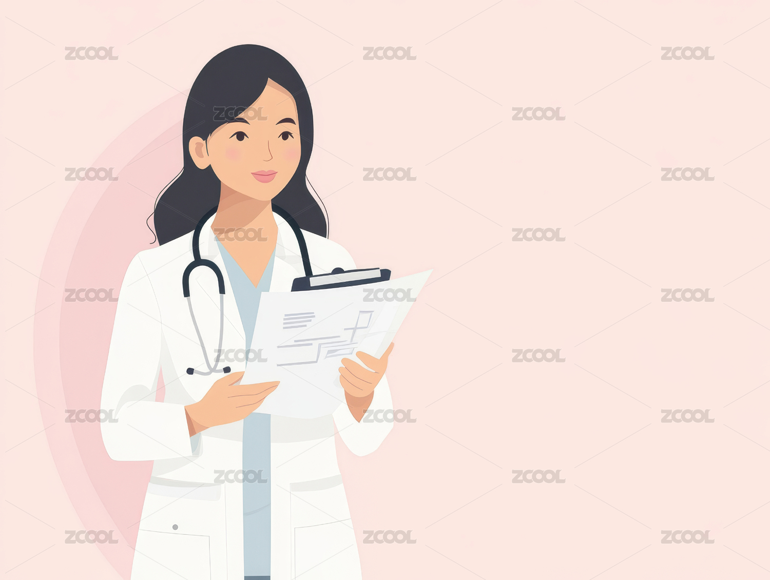医疗插画,扁平插画,医生,白大褂,听诊器,记事本,清单,医疗扁平插画,DXCZ202405