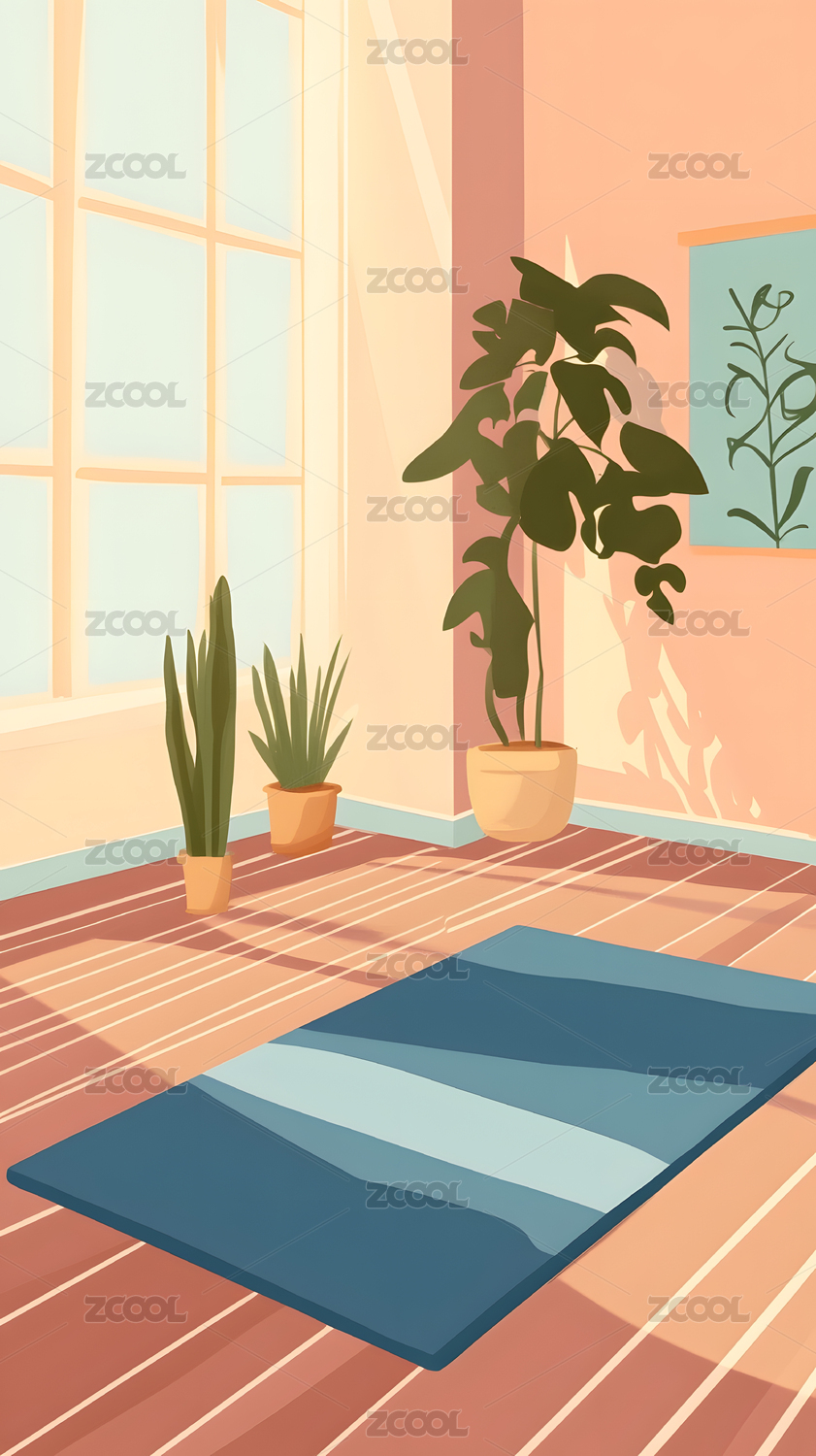 锻炼,运动,健身房,瑜伽垫,卡通,插画