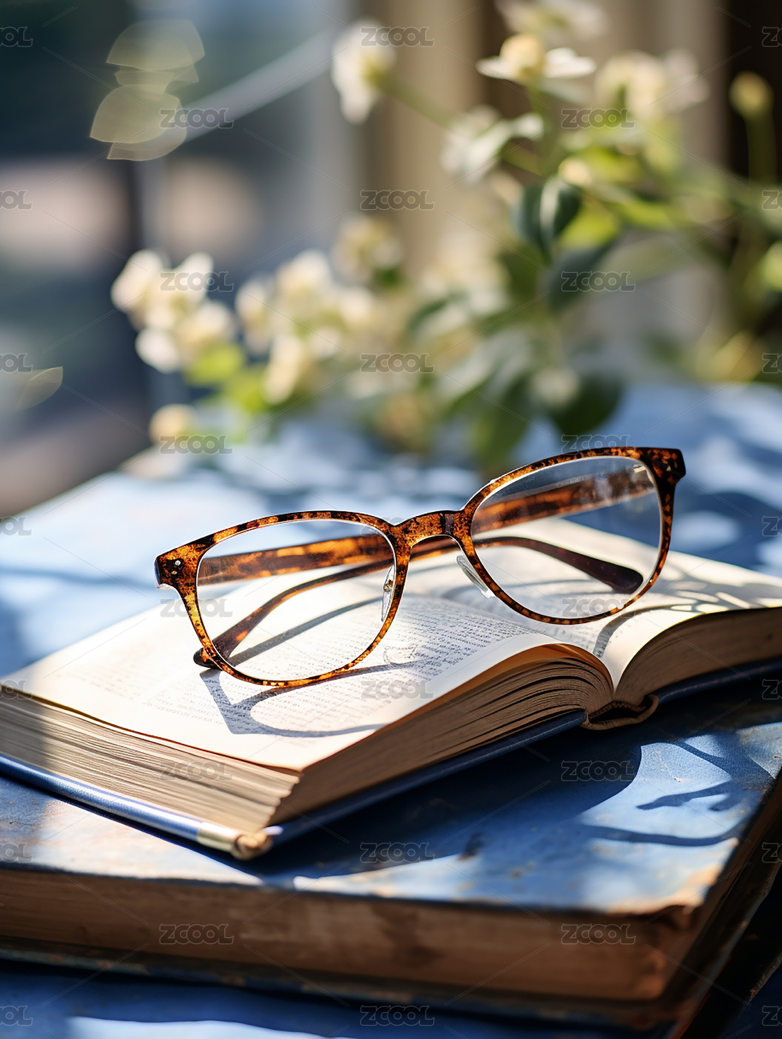 书本上放着眼镜