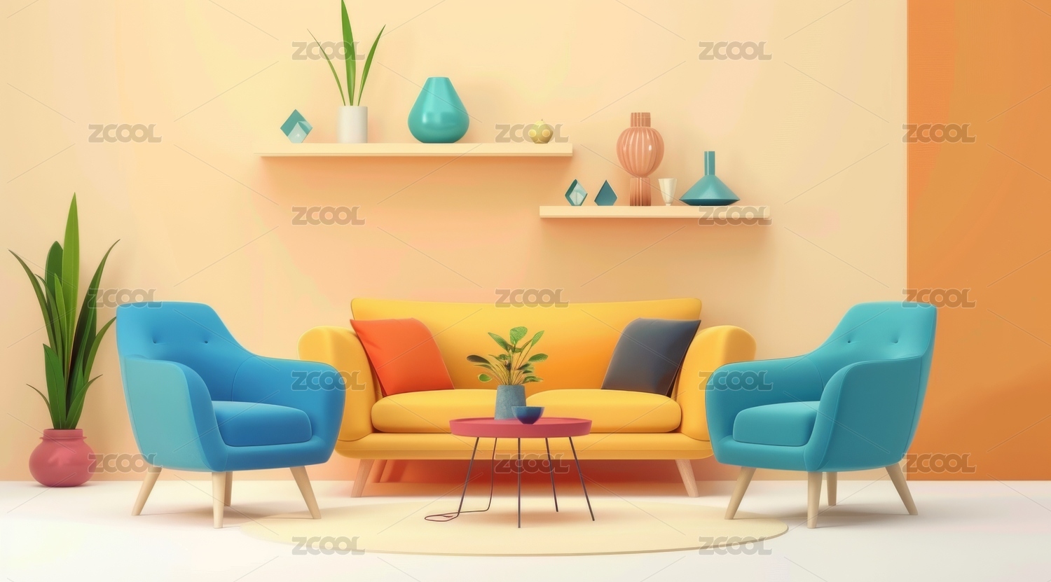 黄色颜色色调极简家具家居3D场景