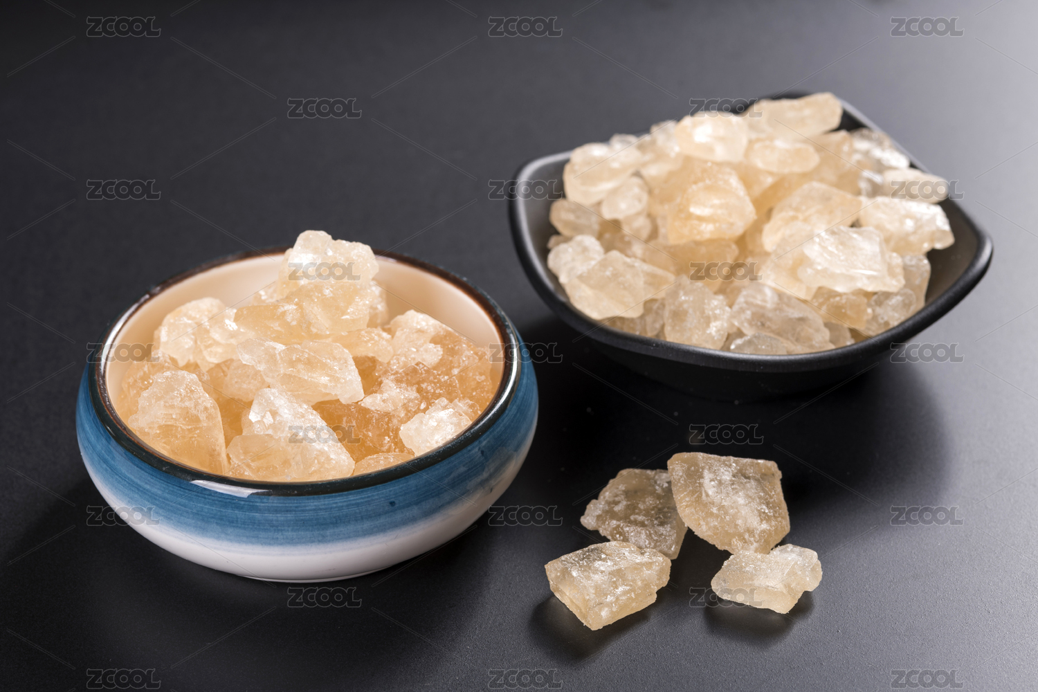 一盘冰糖摆放在桌面上特写