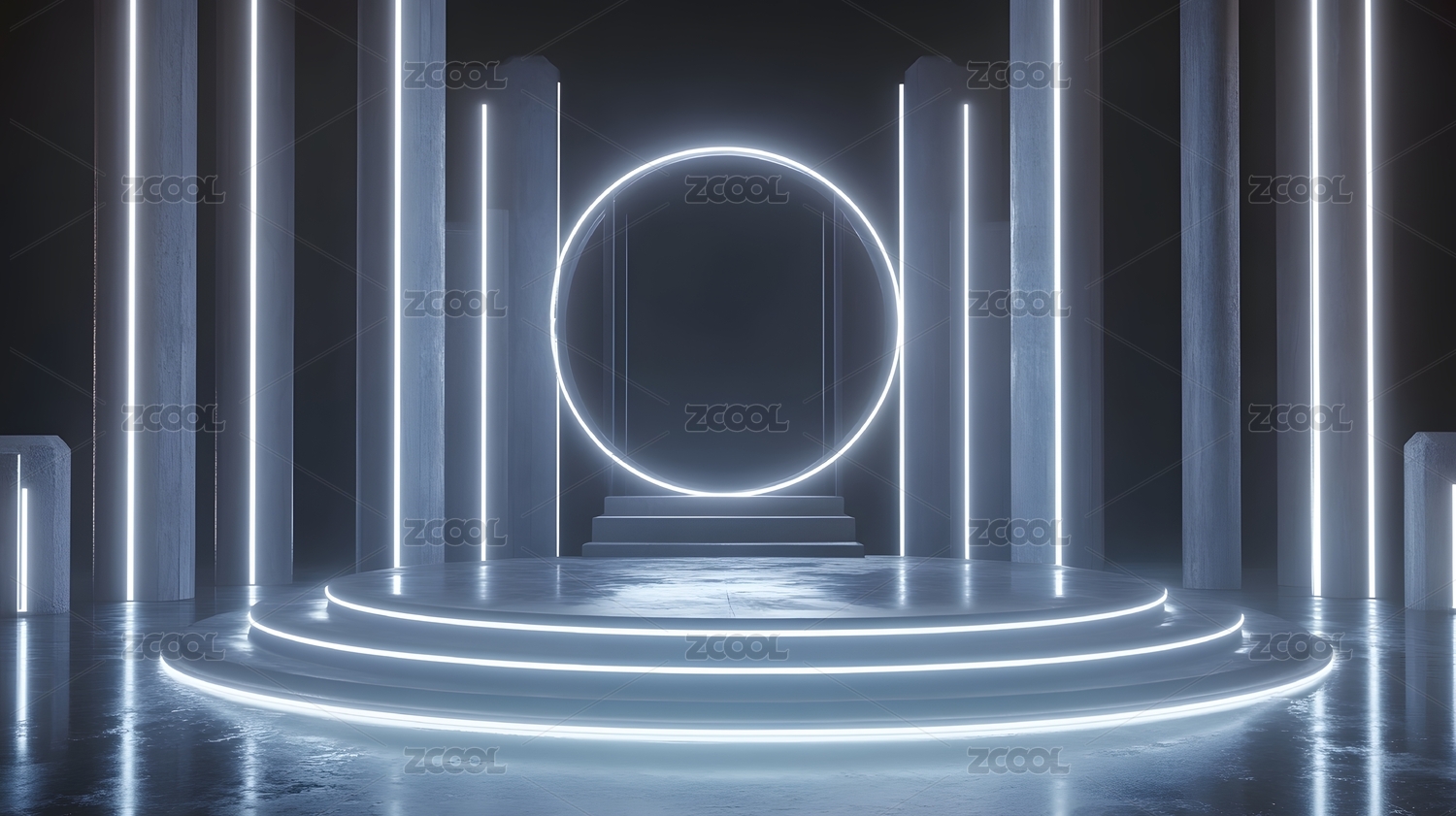 展台,圆形,蓝色,霓虹灯,灯光,科技感,未来感,背景,抽象,舞台