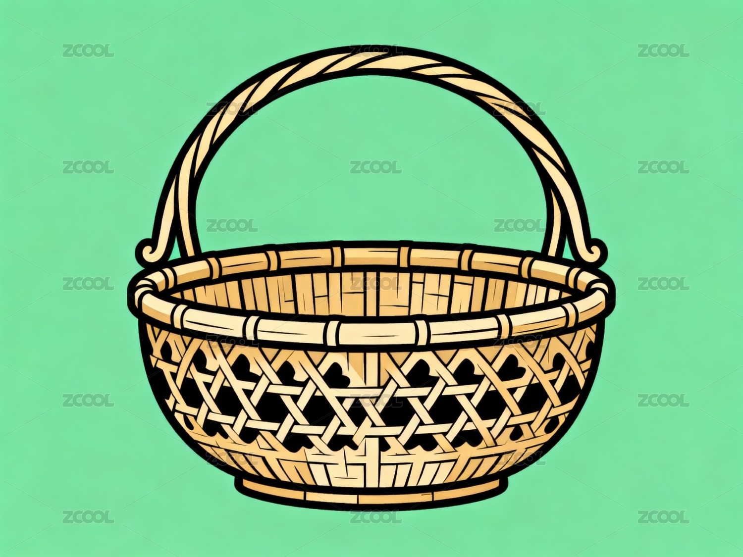 卡通中国风竹篮