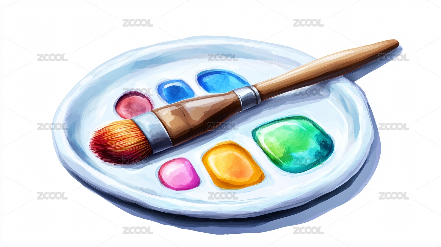 颜料笔刷卡通插画