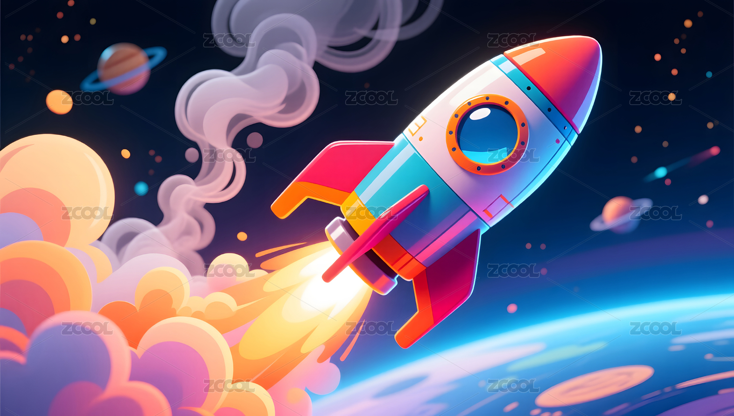 卡通彩色火箭