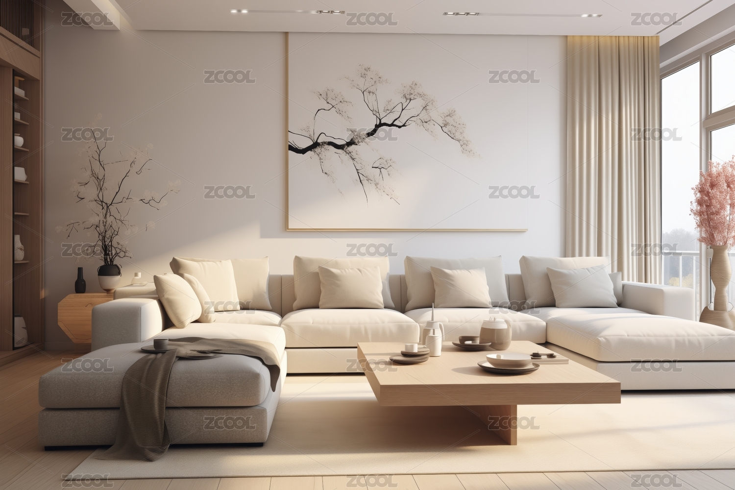 客厅,简约,现代,家具,装饰,沙发,茶几,画作,自然光,木质