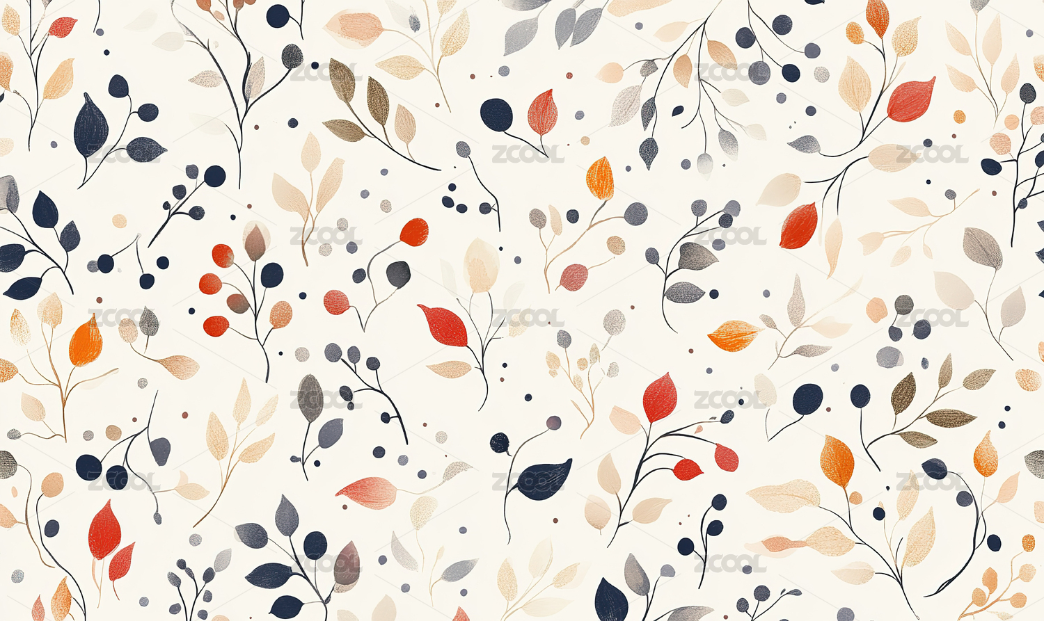 白色背景四方连续碎花植物无缝拼接家纺图案