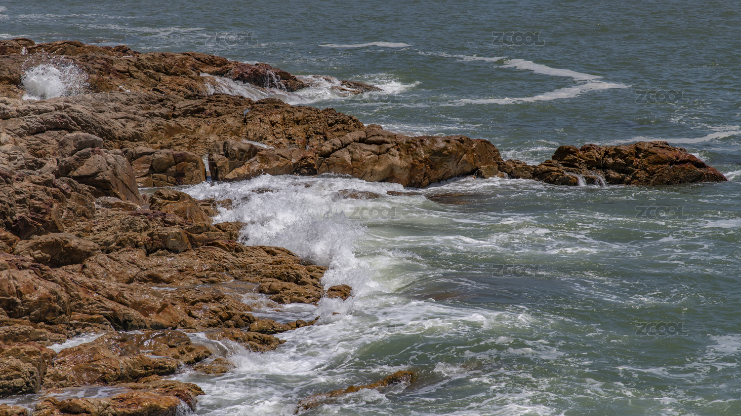 深圳盐田滨海公园海岸礁石浪花自然风光