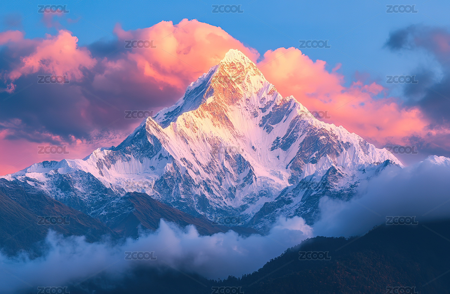 高峰雪山珠穆朗玛峰最高海拔云雾云层