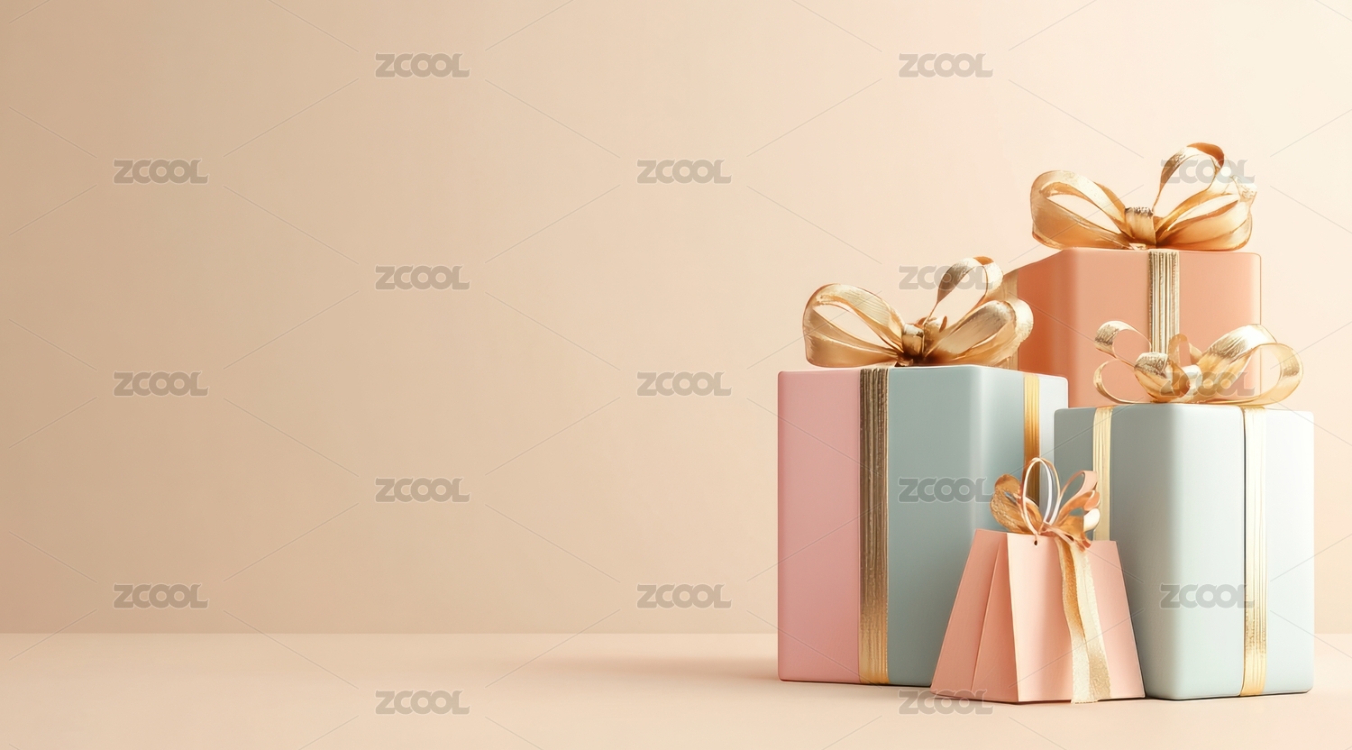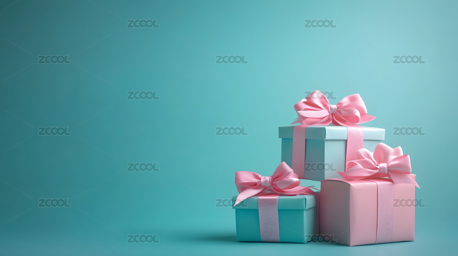 蓝色礼盒与粉色蝴蝶结的温馨场景