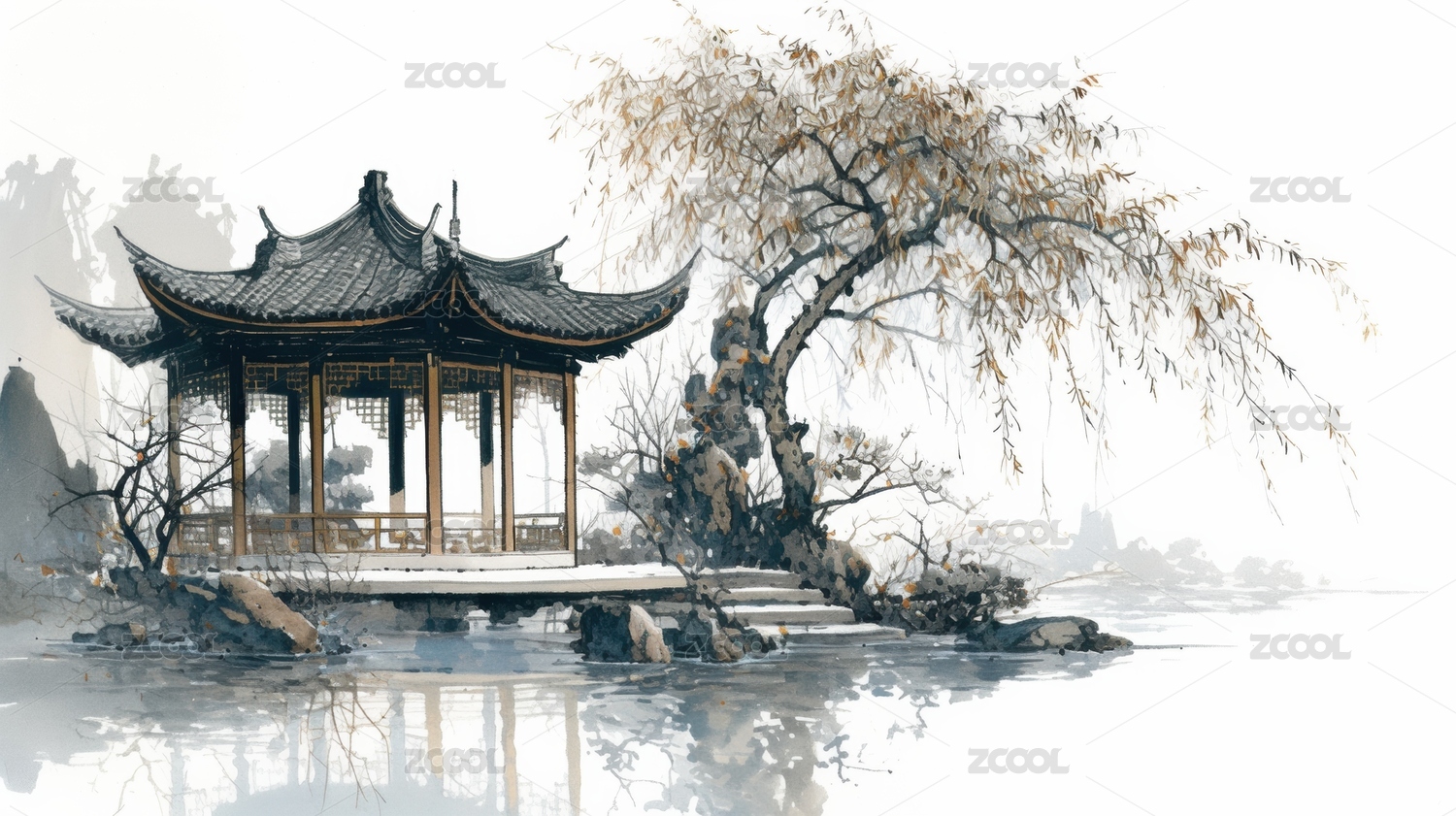 中国风极简主义亭台楼阁建筑设计和空间概念