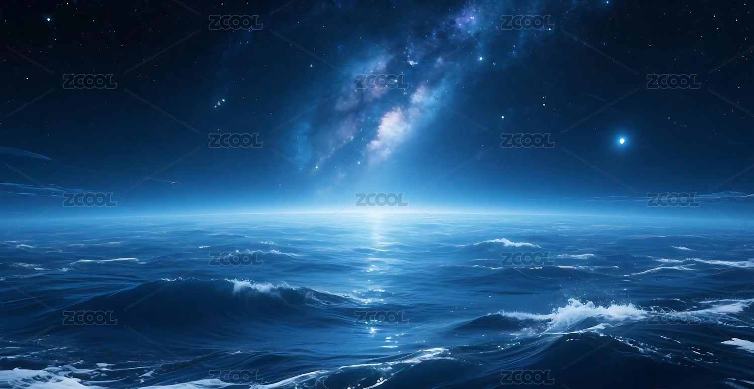 星空下的波涛汹涌,宇宙与海洋的交织奇景