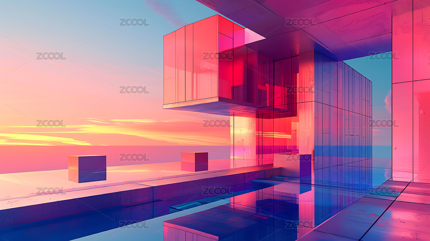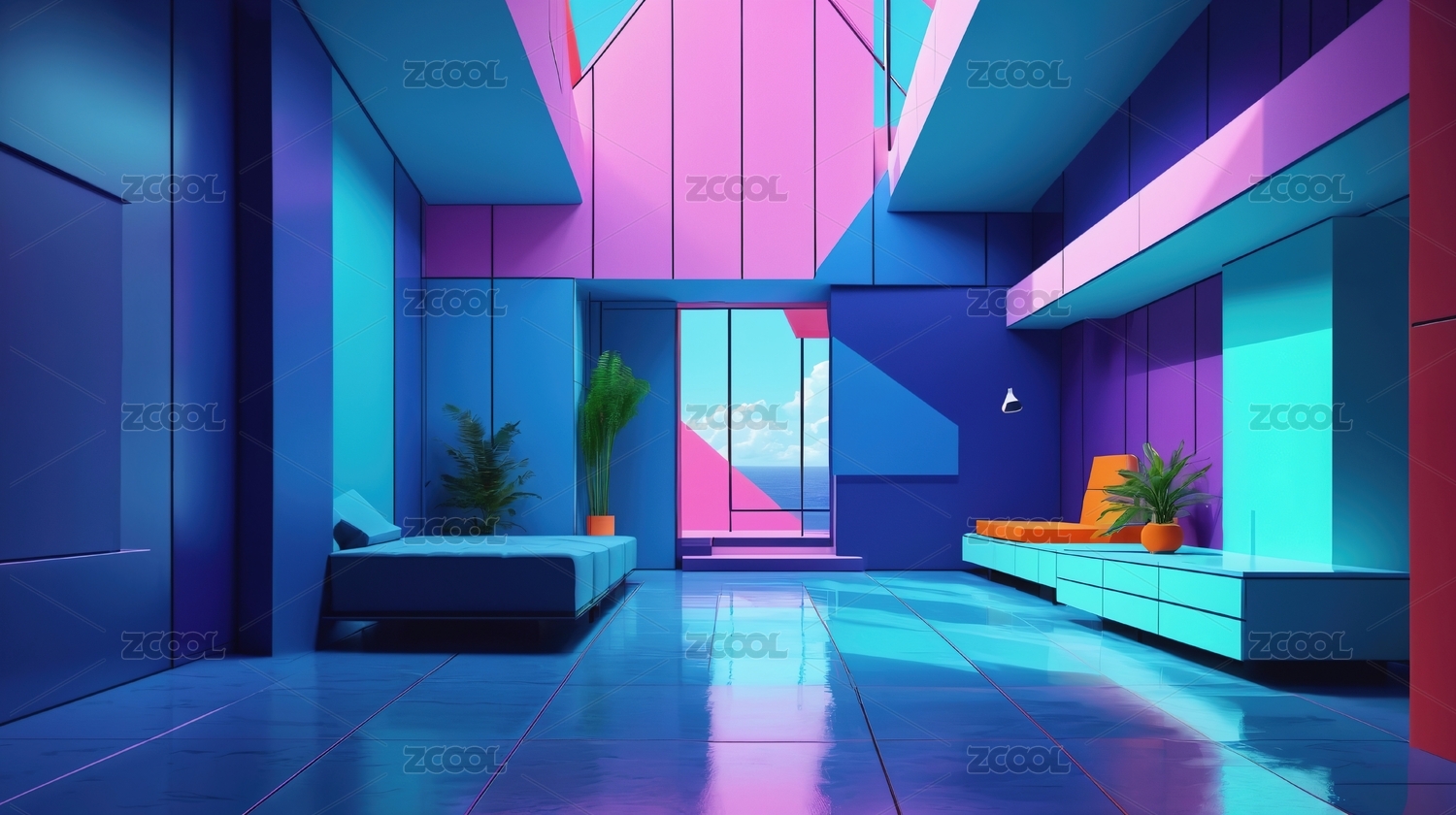 赛博朋克建筑室内空间展厅未来科技科幻虚构
