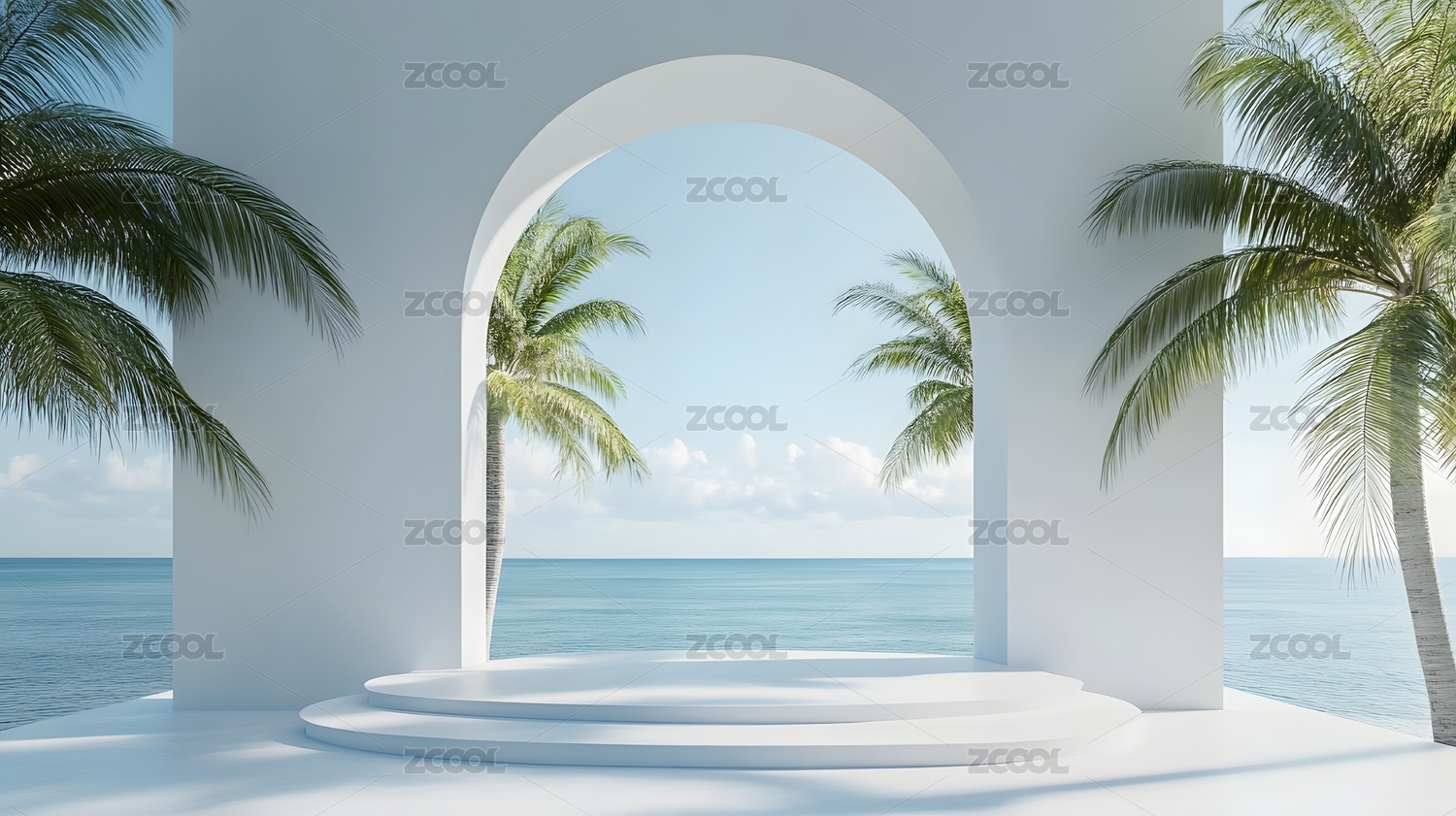 树,天空,白色,绿色,3D,电商,展台,空间,商务,干净
