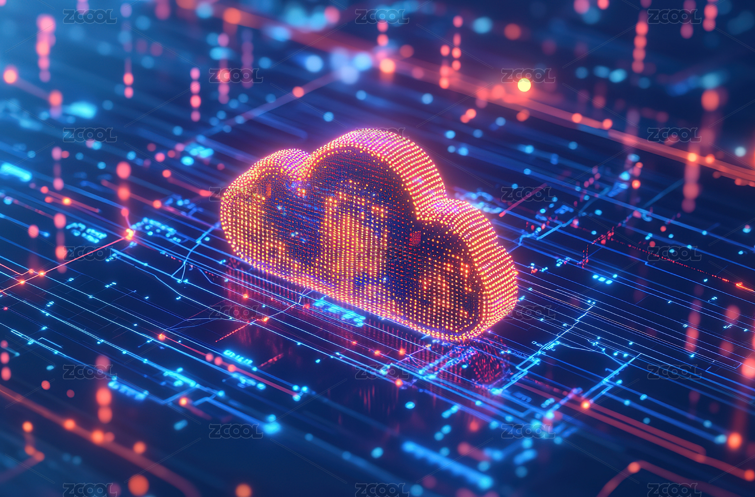 电路板上的霓虹云计算概念图