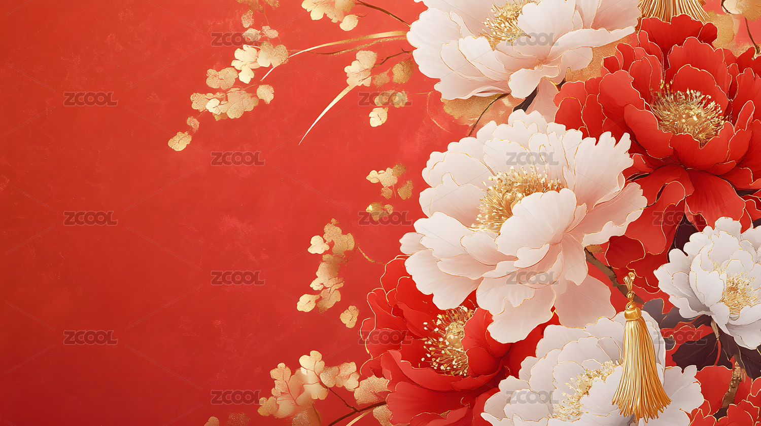新年节日红色牡丹盛开背景