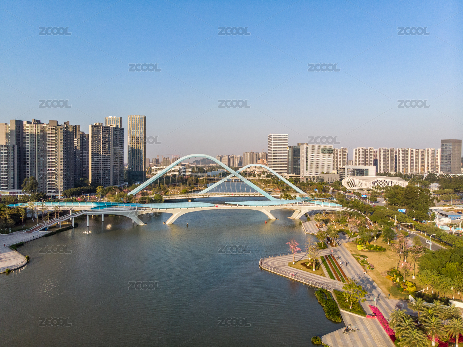 中国广州市南沙区蕉门桥建筑风光