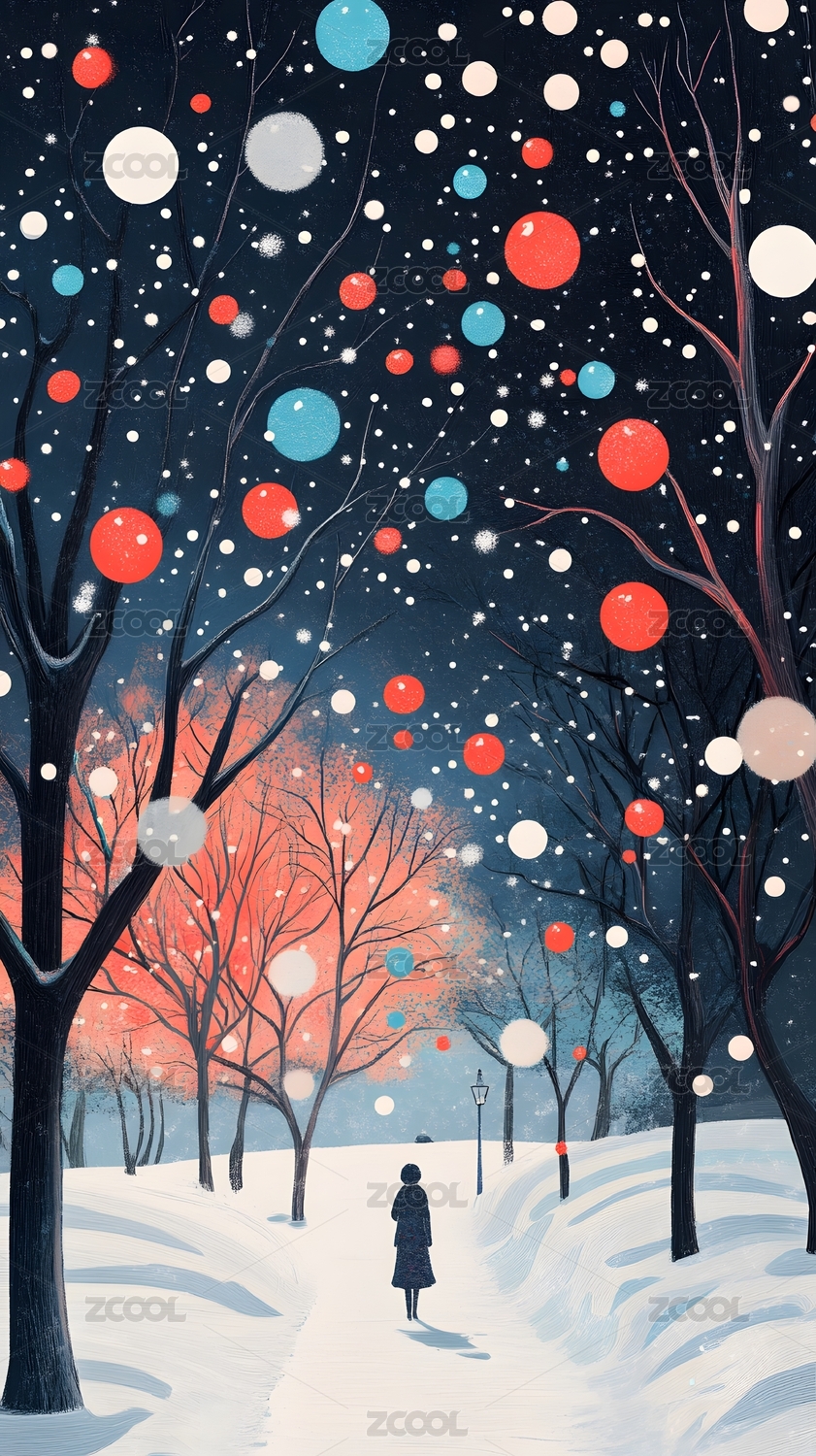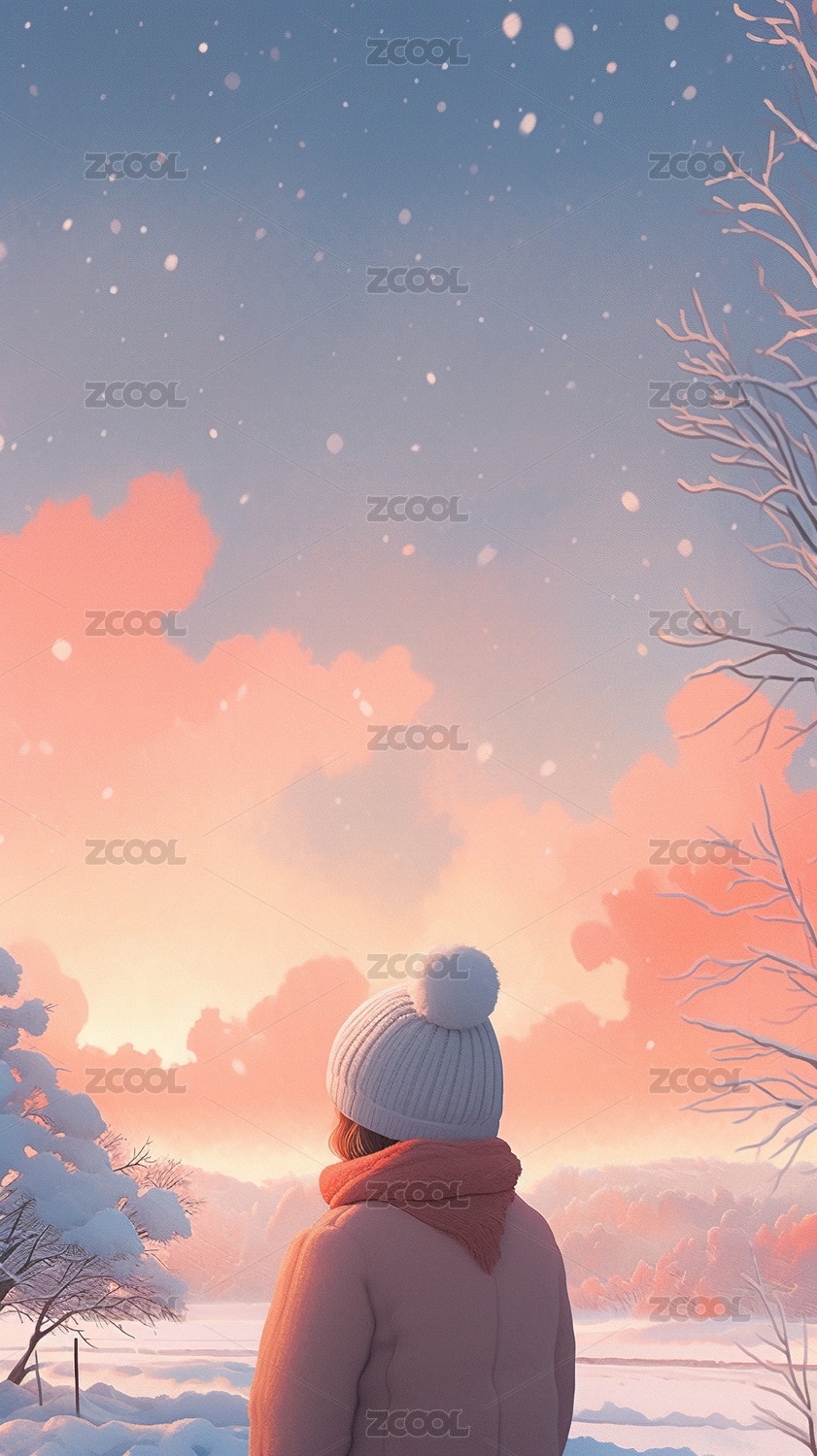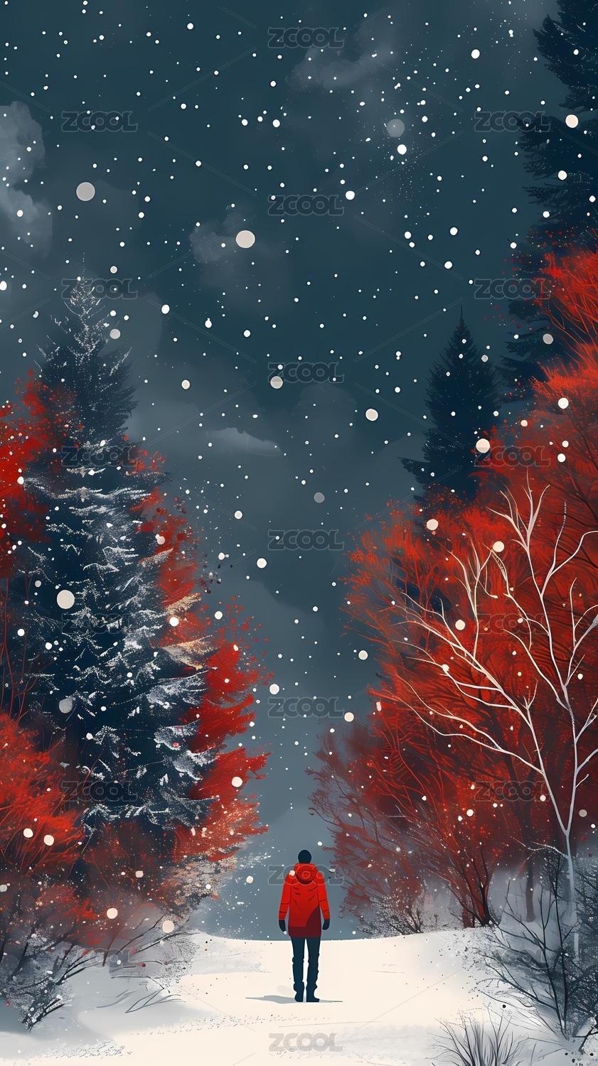 冬天白雪森林人物场景插画海报背景